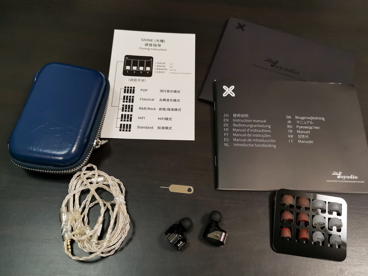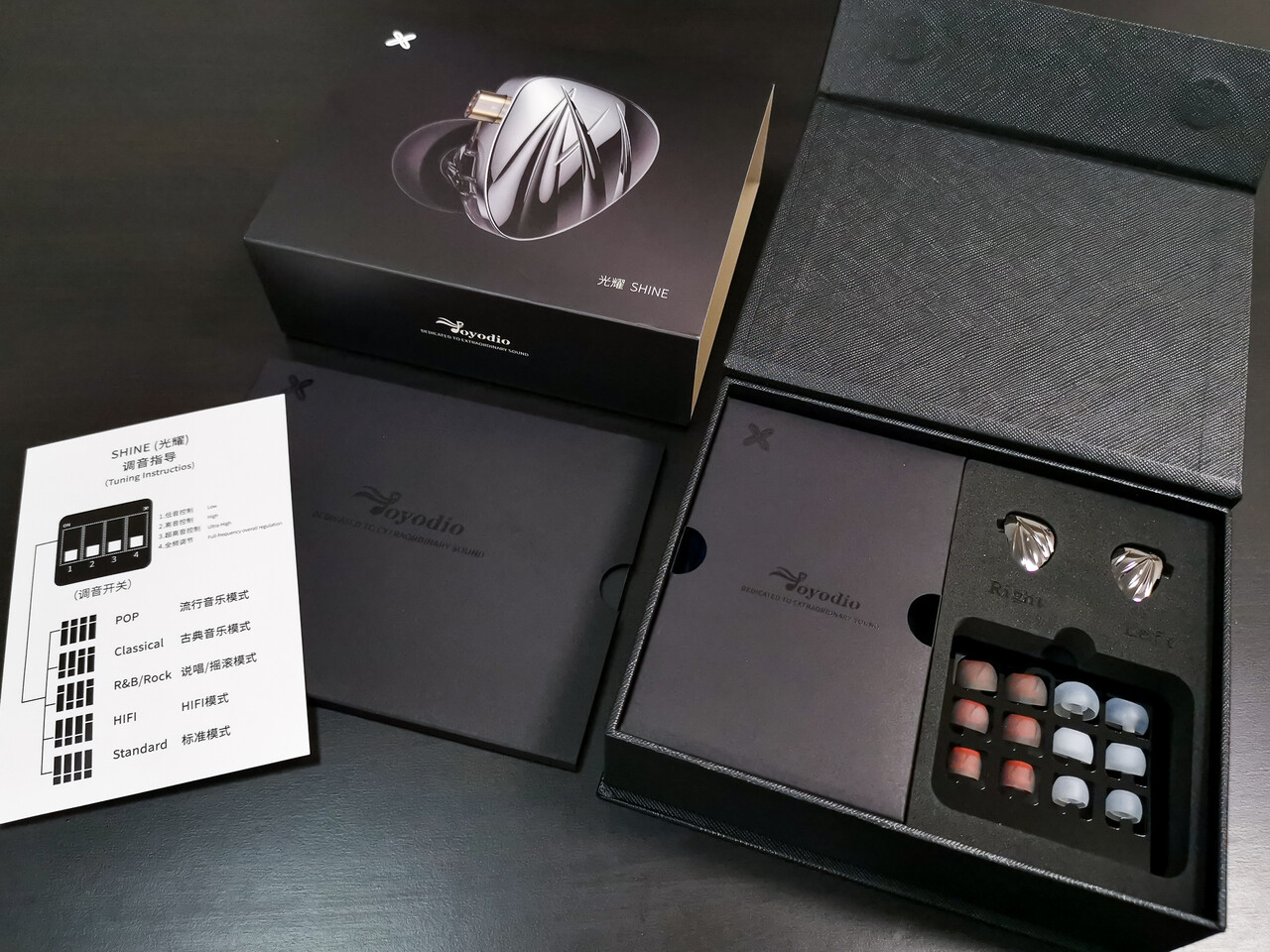 こんにちは。今回は「Joyodio SHINE」です。80ドル前後の価格設定の2BA+1DDハイブリッドのイヤホンですが、その最大の特徴は側面の4系統のスイッチ。低価格ながら低域、高域、超高域と全体のインピーダンスを変化させるスイッチの組み合わせて異なるサウンドバランスを楽しむことが出来ます。それぞれのモードは均整が取れており、お手頃価格で「Yanyin Canon」のようなサウンドチューニングを楽しめる個性的な製品です。