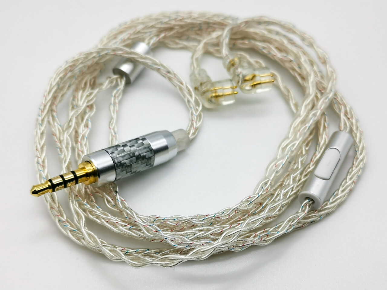 ケーブルは細めの線材による8芯 銀メッキ線ケーブル。今回はマイク付きモデルで届きました。コネクタはqdc互換タイプ。柔らかい線材で取り回しは良いですが、適時リケーブルを検討するのも良いでしょう。