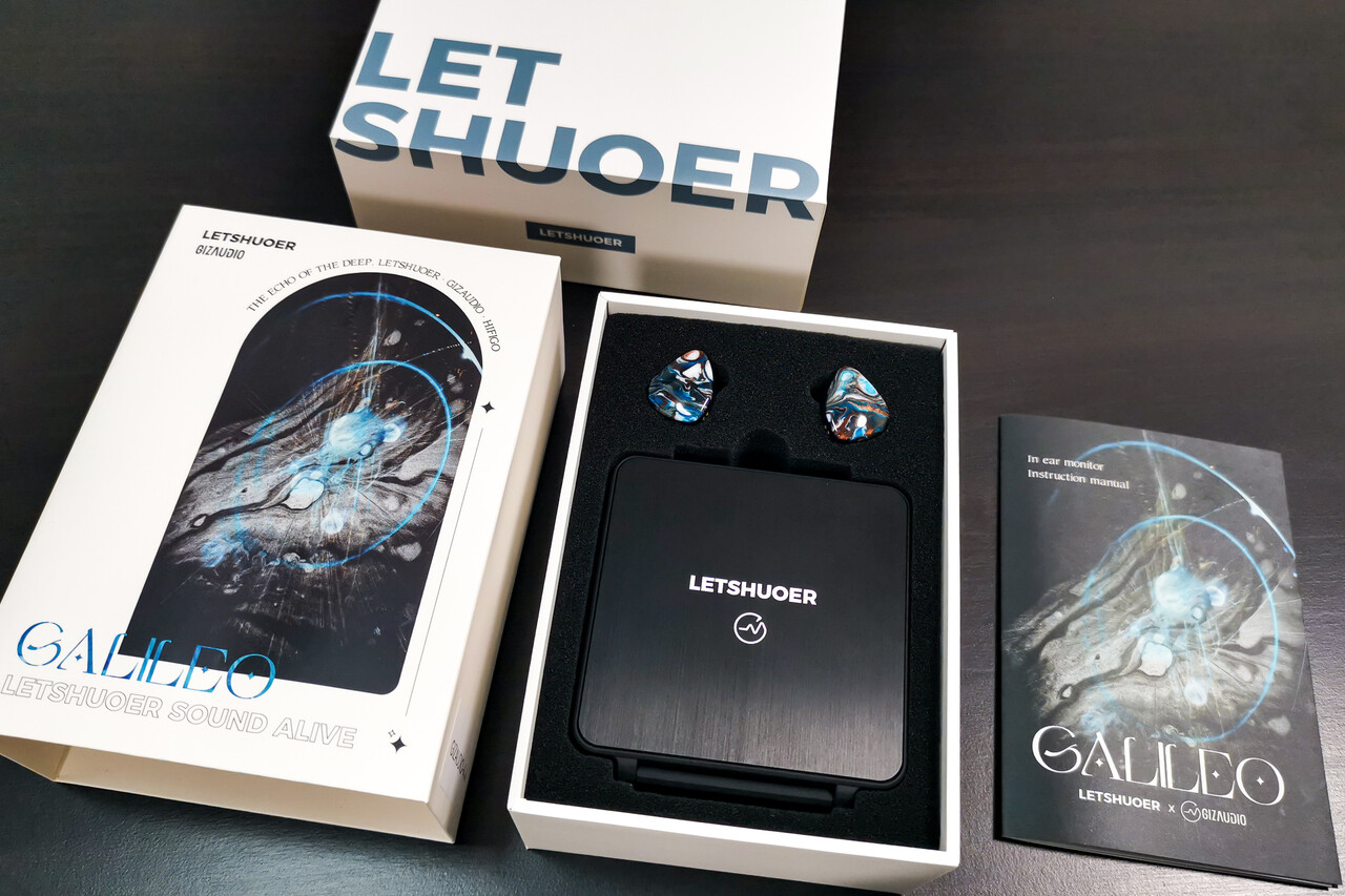 こんにちは。今回は 「LETSHUOER x GIZAUDIO Galileo」です。2月10日よりリリースを開始し、現在プレオーダーを実施中の製品です。価格発表前からサンプルが各レビュアーに配布されており、Twitterなどでは公開されていましたが、実際に発売されると想像以上のお手頃価格に驚きましたね。星雲をイメージさせる美しいシェルデザインに10mm リキッドシリコン振動板ダイナミックドライバーとSonion製BAのハイブリッド構成で、100ドル級イヤホンとしてはかなり質の高いニュートラルサウンドを実現しています。