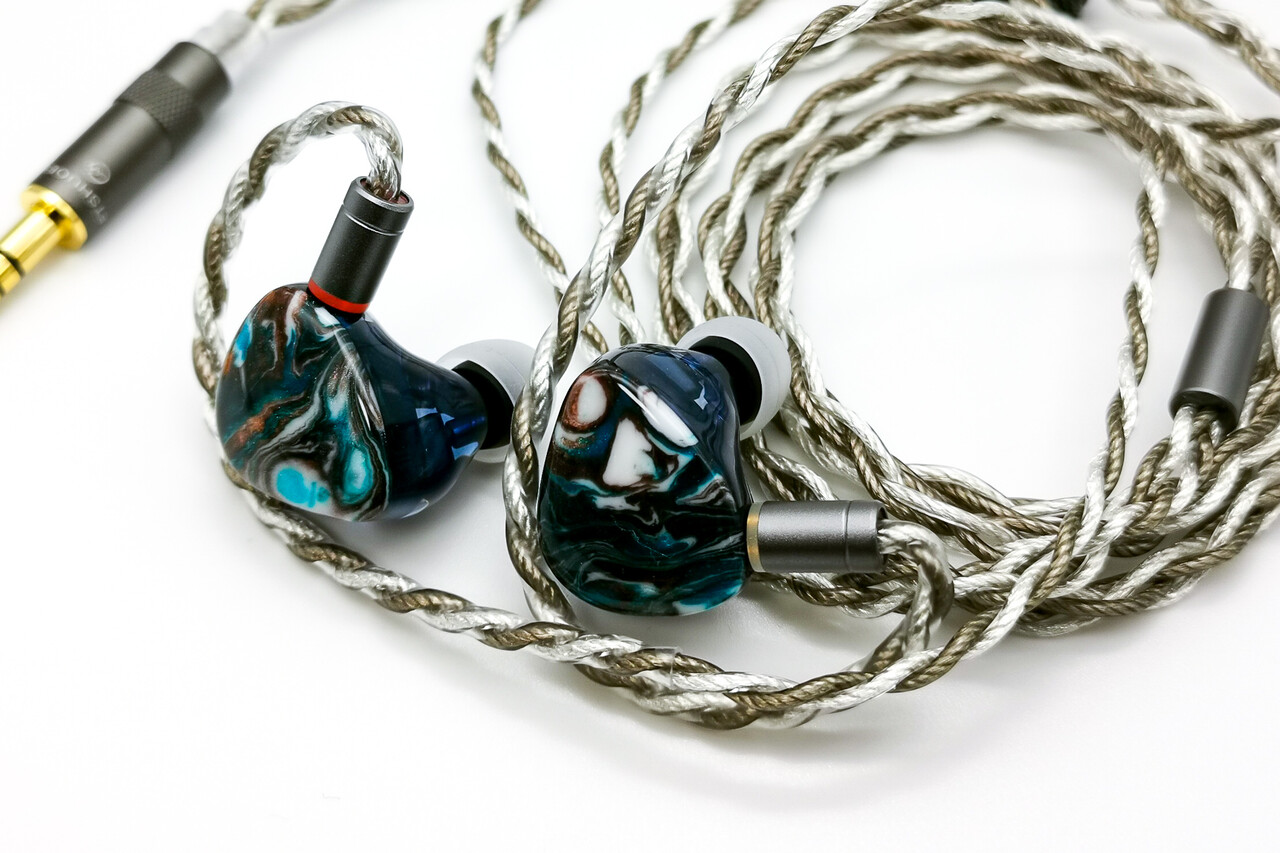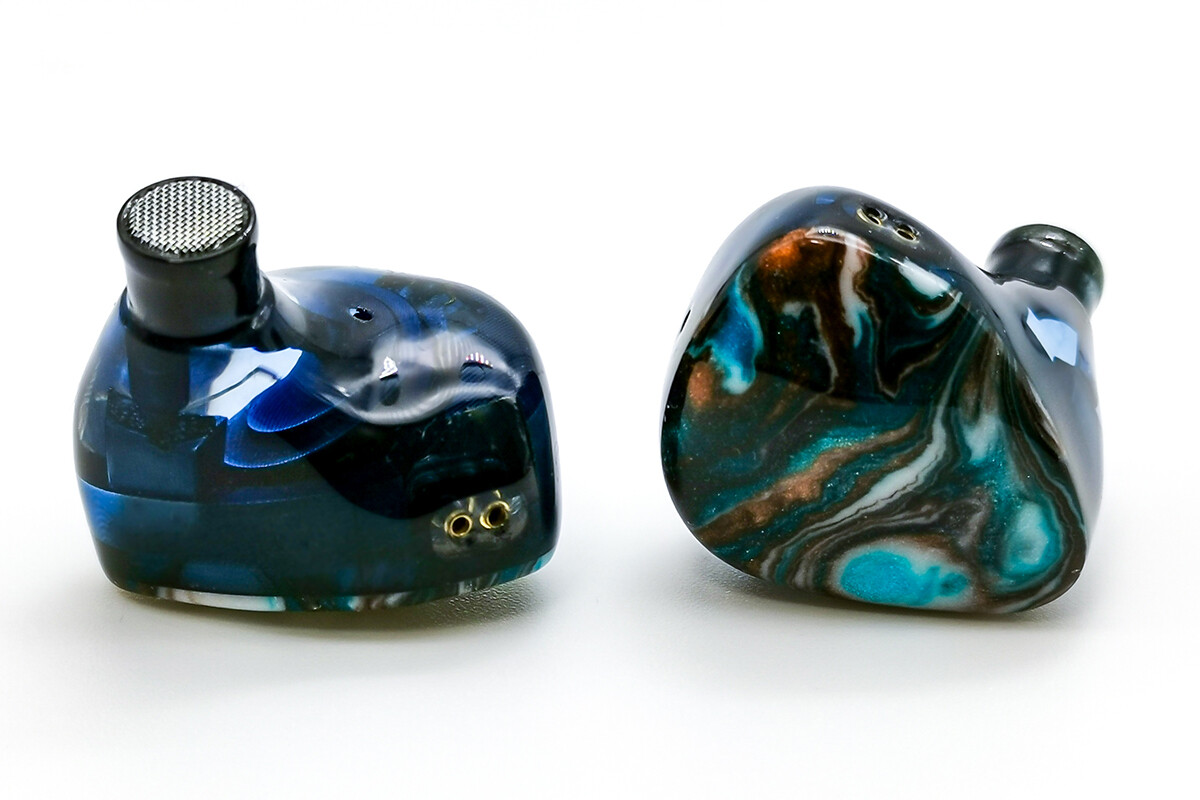 美しいデザインのシェルは高精度の3Dプリンティング技術によって成形されており、LETSHUOER が開発した新しい音響キャビティと消音構造も同時に成形され、高域の見通しの向上と自然で滑らかなサウンドを実現します。フェイスパネルは天の川と星をイメージしたデザインで、アジュールブルー、ダークブラウン、シルバーホワイトのインクが個体ごとに異なる模様を描き、樹脂コーティングされた表面処理により独自の輝きがあります。