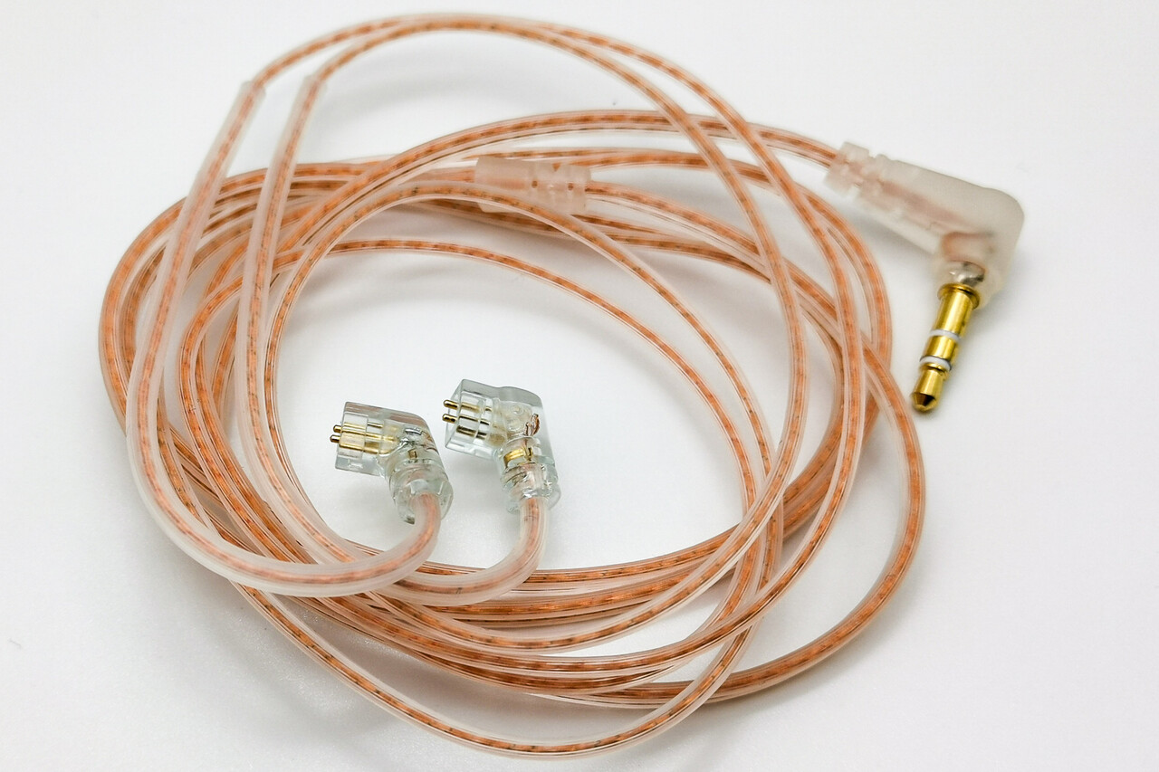 ケーブルは樹脂被膜の銅線で、樹脂被膜はちょっとザラツキがあり樹脂感つよめの印象。コネクタはqdcカバーの0.78mm 2pinで、現在はJSHiFiなどのqdcタイプのケーブルにリケーブル可能とのこと。