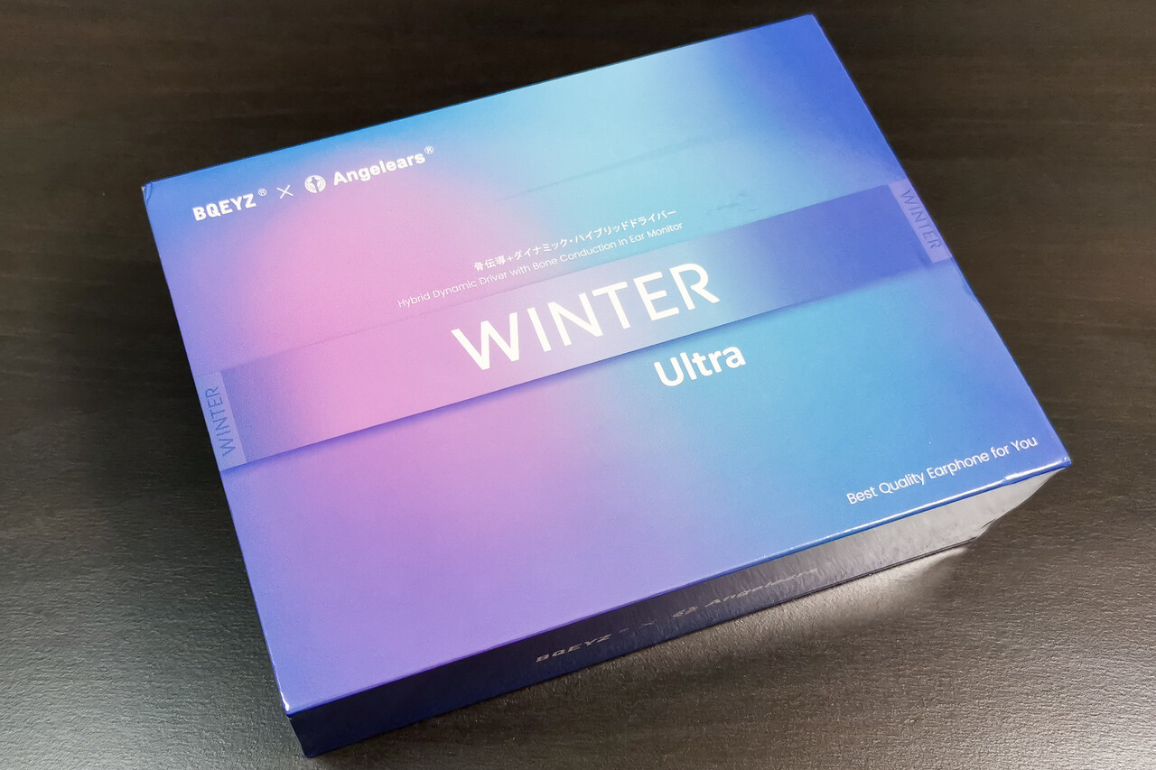 こんにちは。今回は「BQEYZ × Angelears Winter Ultra」です。中国のイヤホンブランド「BQEYZ」がリリースしたPZT骨伝導+DDハイブリッド構成の「Winter」をベースにこれまでも様々な人気コラボモデルをリリースしている「Angelears」とのコラボにより、新たなチューニング、新たなケーブルを付属してリリースされたモデルです。評価の高い「Winter」のバランスを踏襲しつつ骨伝導のサウンドをより実感しやすいスッキリしたニュートラルバランスで仕上げられています。