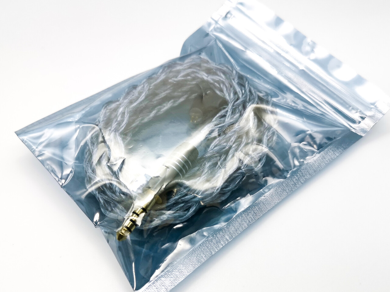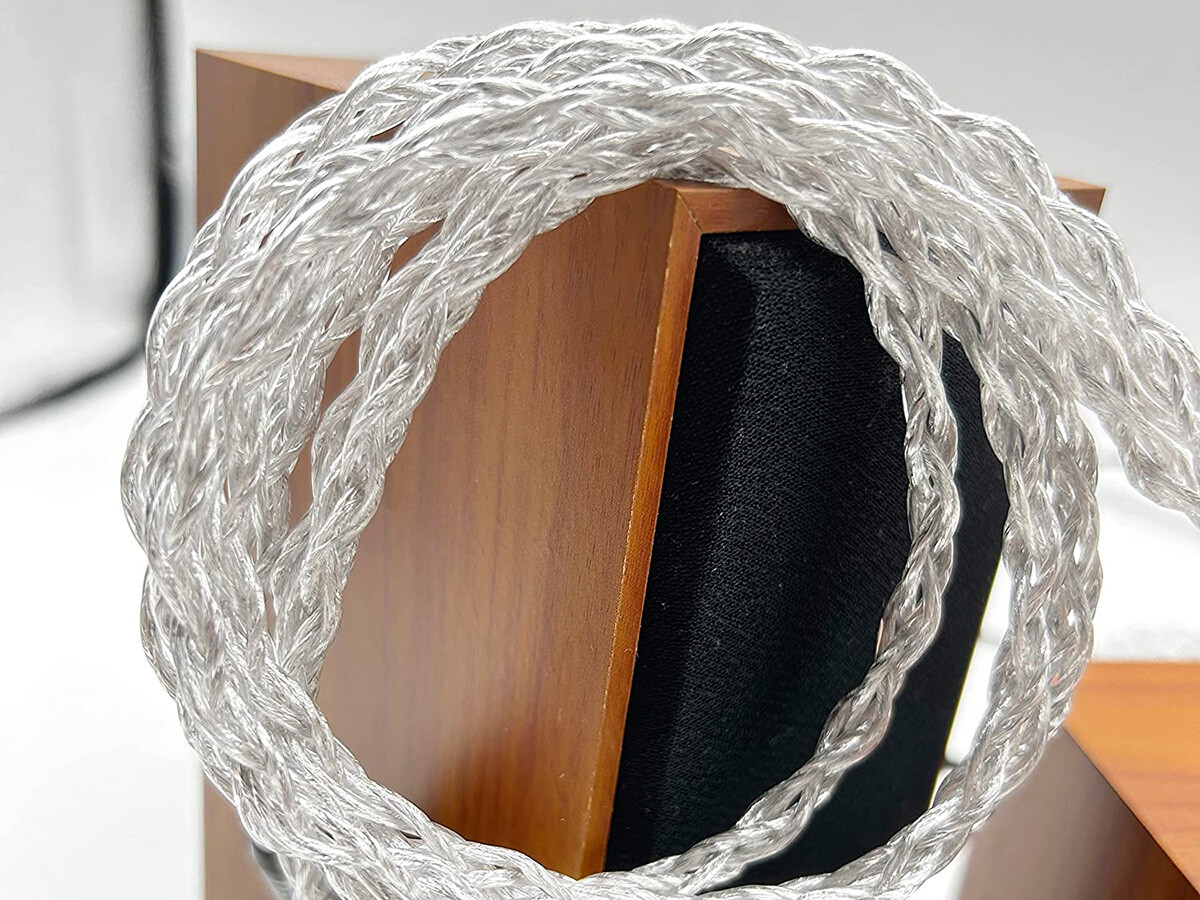製品は袋入りの簡易包装。ケーブルは太さのある線材を丁寧に編み込んだ4芯線で、銀メッキ線で覆われた外周部を透明な樹脂被膜で覆った線材を使用しています。同軸線の構成と言うこともあり、従来の「BIGMANGO」のケーブルより若干太め。被膜は多少弾力がありやや硬めですが、しっかりと編み込まれているため取り回しで困ることはないでしょう。