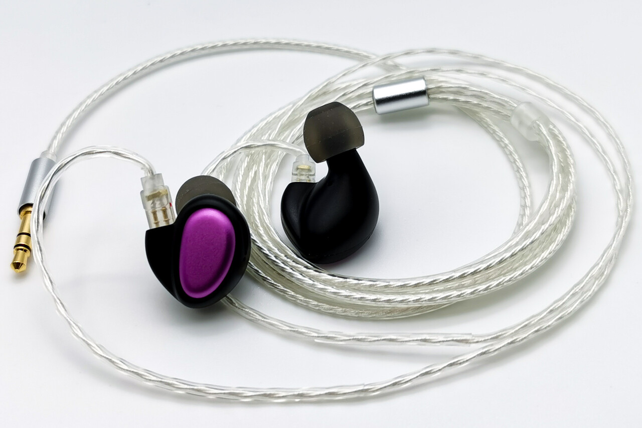 フェイス部分は丸みを帯びたカラープレートで、「ブラック」および「ホワイト」のモデルでは「パープル」、「チタニウム」カラーモデルでは「ブルー」のカラーリングが採用されています。ケーブルは0.78mm 2pin仕様で、高純度OCC線材を使用。透明な樹脂被膜で覆われておりやや弾力がありますが使いやすい印象。また一般的な2pin仕様なのでリケーブルを行うのも良いでしょう。