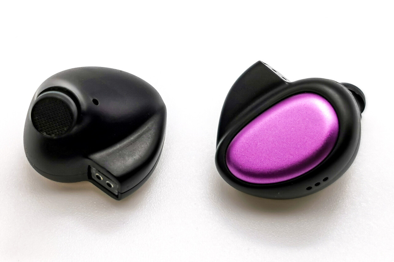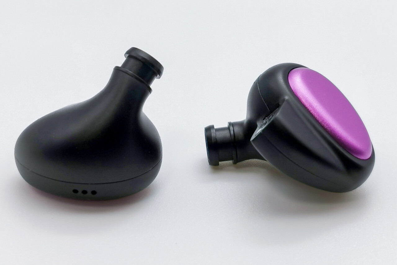 「TRIPOWIN×HBB Kailua」の本体は金属製で耳掛け型のコンパクトなシェルデザイン。ShureやWestoneなどのイヤホンで多く見られる形状で、伝統的なインイヤーモニターのデザインを踏襲しています。このデザインの製品は内部スペースが小さいため、収容できるドライバーやネットワーク回路などがある程度制限されるものの、耳の大きさに寄らずより多くの方が装着しやすい点と、イヤーピースをしっかり合わせることで結構高い遮音性を得られる点が特徴です。また大小2基のダイナミックドライバーを横並びで配置する事を考慮しても選択しやすい形状だったと思われます。