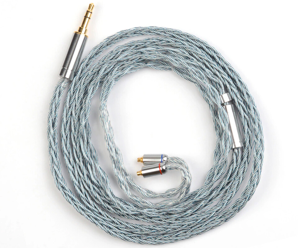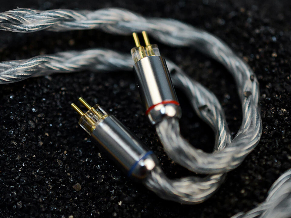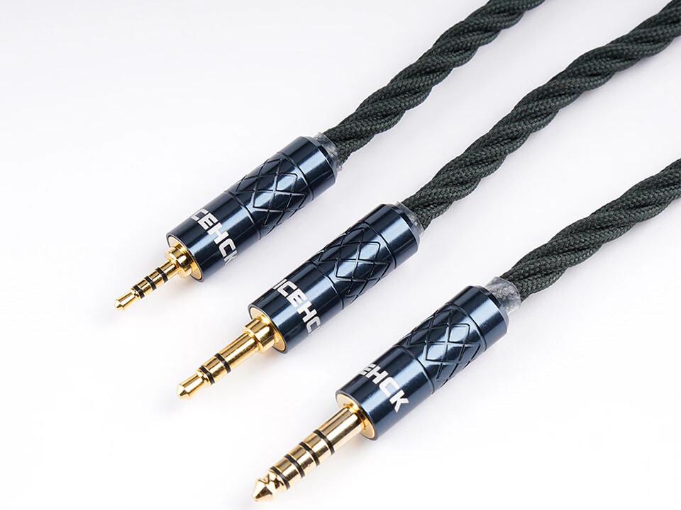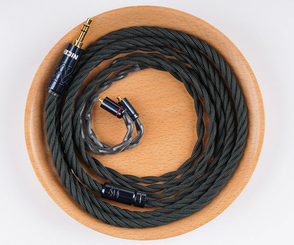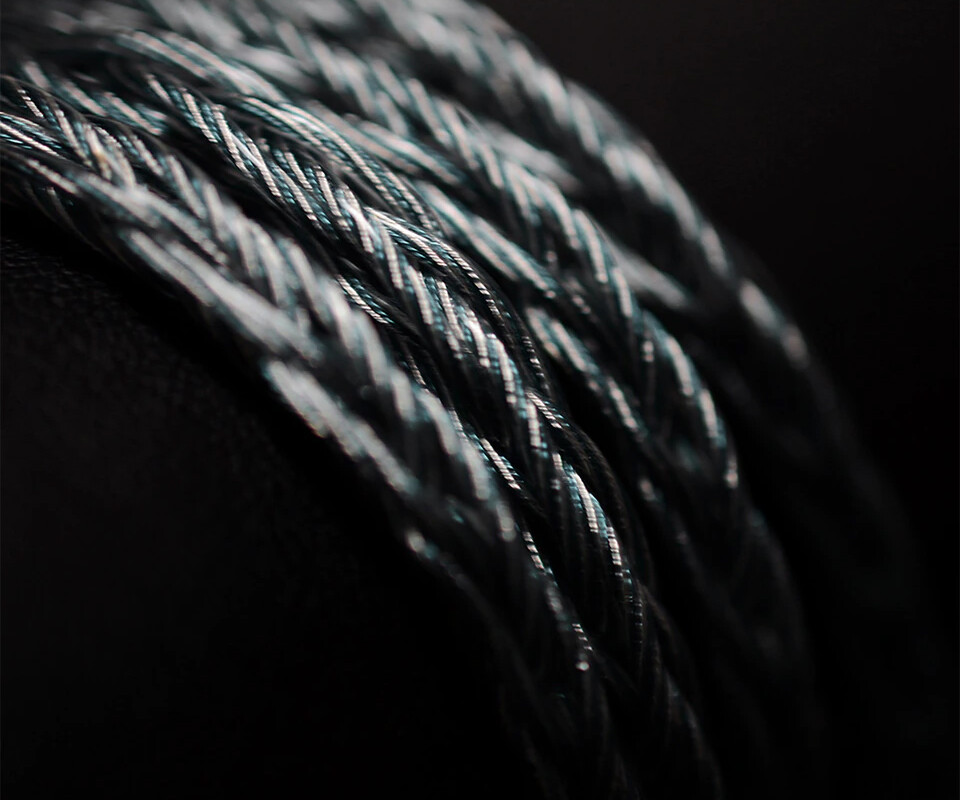ほぼブラックに近い深いグリーンの布被膜で覆われた太めの銀メッキ線ケーブルです。プラグやコネクタ部分は上位ケーブルと同様の濃いダークブルーの金属製パーツを使用しています。プラグは3.5mmのほか、4.4mm、2.5mmを、コネクタはCIEM 2pinとMMCXが選択できます。