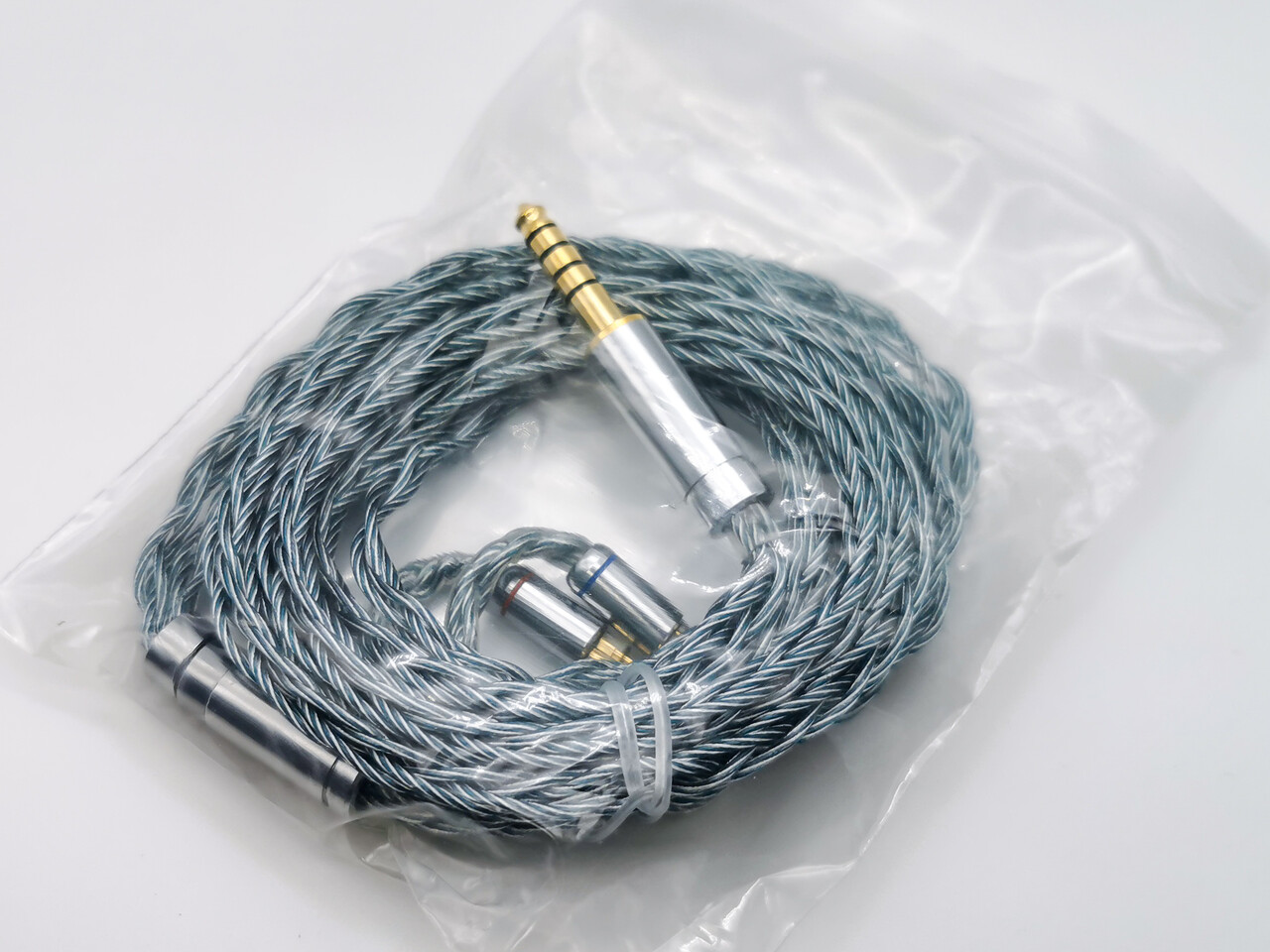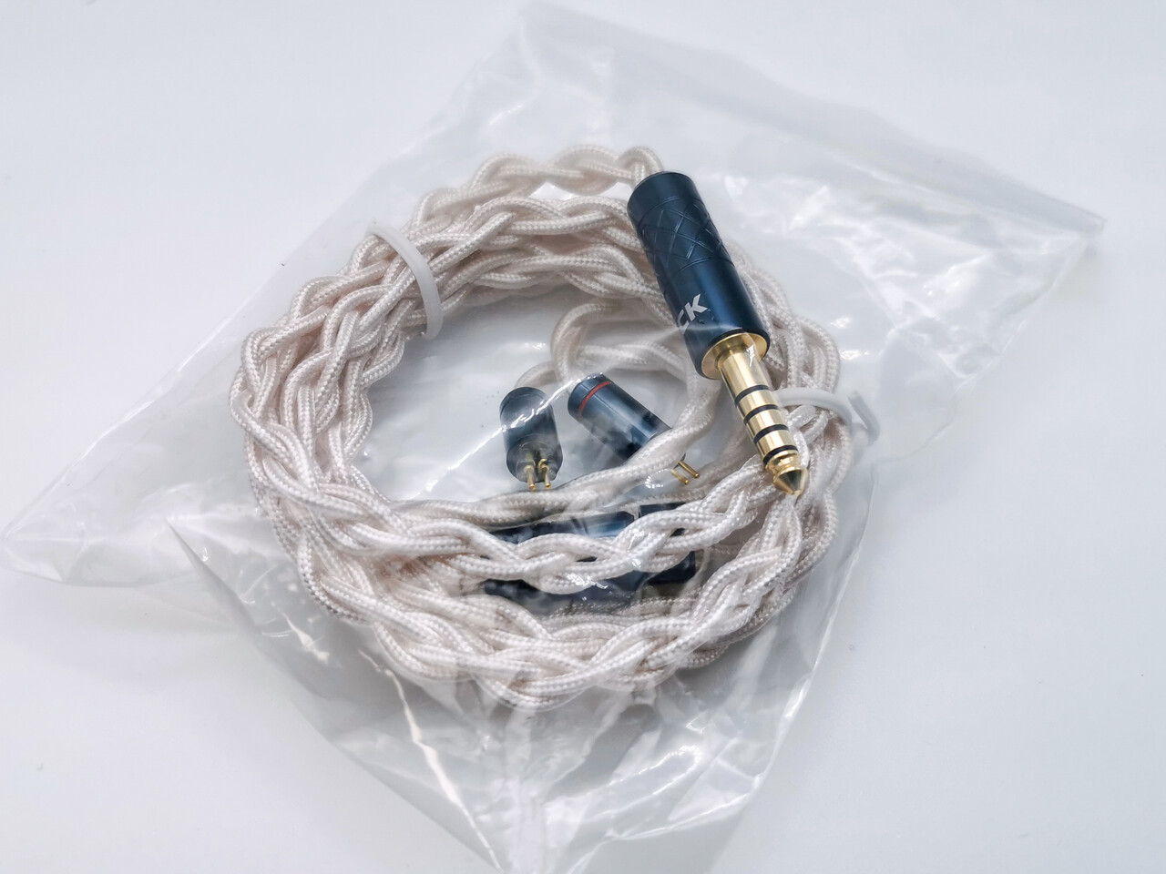 実質50ドル程度のケーブルということで内容は袋入りです。ケーブルとしては4芯タイプですが中華ケーブルでの手編みのタイプでは無く機械編みで一本の撚り線にしっかり編み込まれているタイプ。比較的太めの線材を使用していることもあり、ケーブルとしては結構硬めで、取り回しはちょっとしにくいかも知れません。