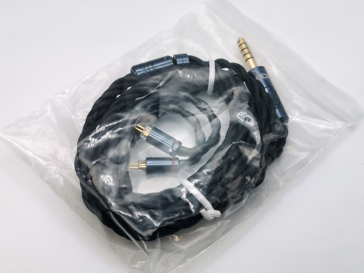 このように低価格なケーブルですが、プラグやコネクタ部分は上位ケーブルと同様の濃いダークブルーの金属製パーツを使用しています。プラグは3.5mmのほか、4.4mm、2.5mmを、コネクタはCIEM 2pinとMMCXが選択できますが、「RedAg」にあったqdcタイプは選択できません。低価格ケーブルと言うことで製品は袋入りの簡易包装で届きました。