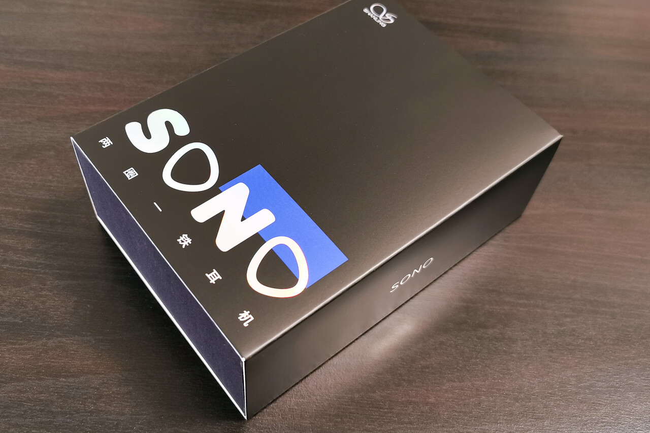 「SHANLING SONO」のパッケージはブラックのシンプルなデザイン。それでもShanlingの以前のイヤホン製品は非常に地味なパッケージでしたが、最近は結構スタイリッシュになってきていますね。