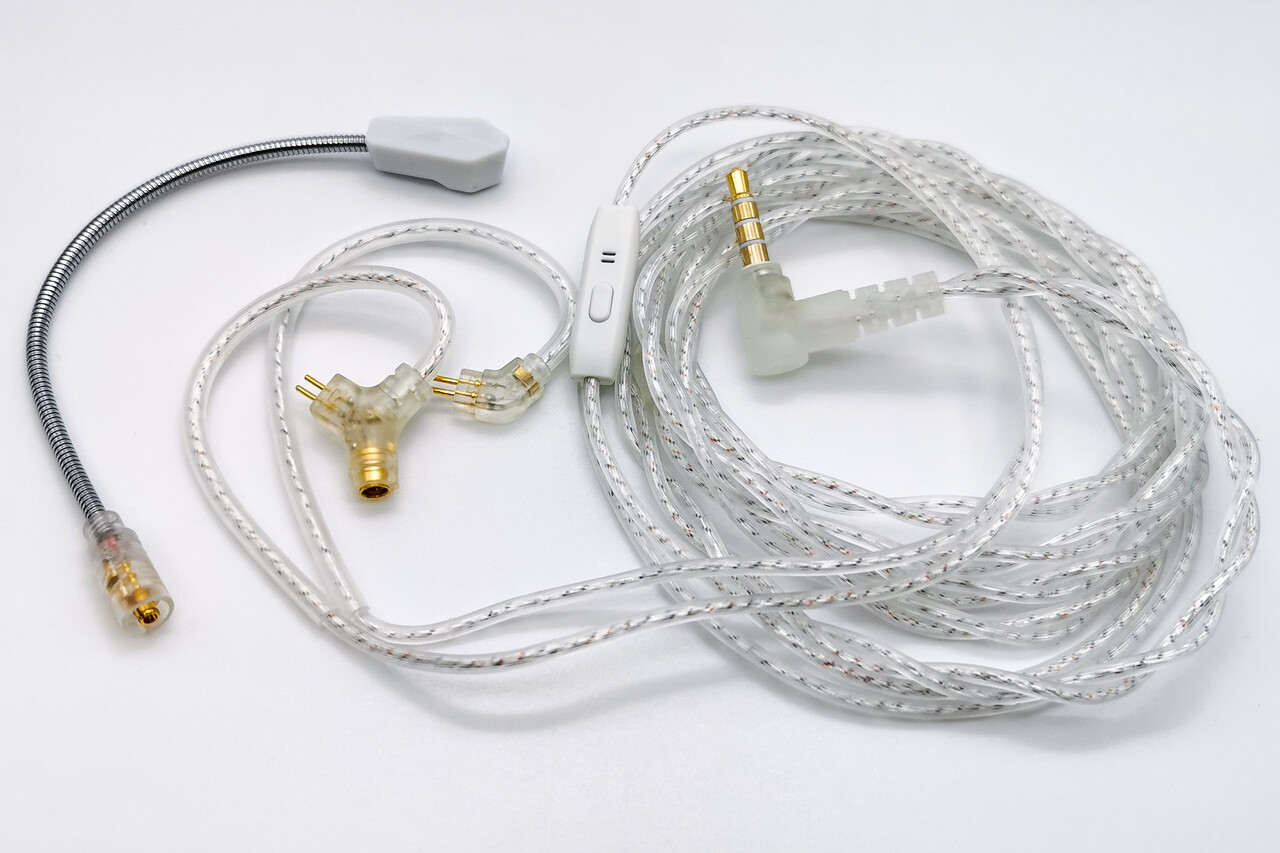 コネクタは0.78mm 2pin仕様でリケーブルが可能。またモデルにより2種類の異なるケーブルを設定しています。標準モデルの「Celest Wyvern」ではイヤホンマイク付きケーブルが付属。そしてアップグレード仕様の「Celest Wyvern Pro」では脱着式ヘッドセットマイクが装着可能なケーブルが付属します。