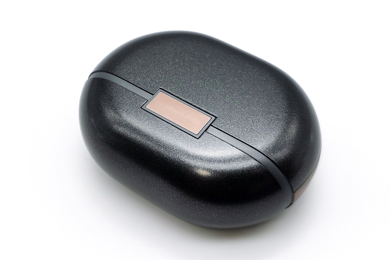 また充電ケースは330mAhと容量は一般的ですが非常に軽量でコンパクトサイズにまとめられています。丸みを帯びたデザインで使いやすい形状ですね。