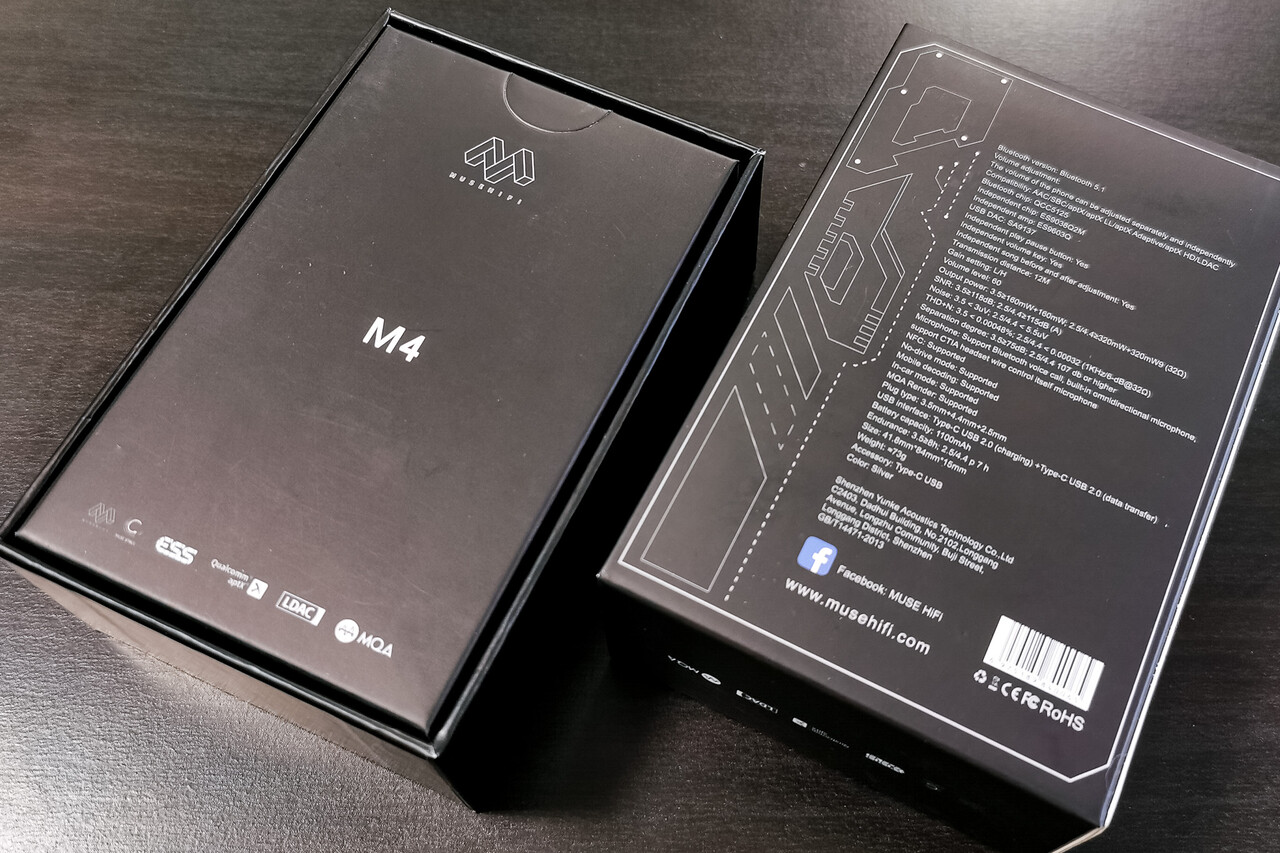 「MUSE HiFi M4」のパッケージは小型オーディオアダプター製品としては結構しっかりした印象。