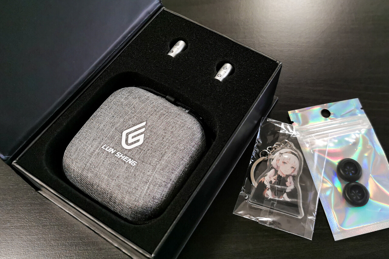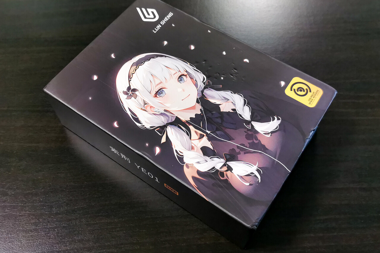 「LUN SHENG YE01 (2023)」のパッケージはキャラ絵タイプのデザイン。パッケージ内容は、イヤホン本体、ケーブル(MMCXコネクタ)、イヤーピース、スポンジイヤーパッド(3ペア)、ケース、説明書など。