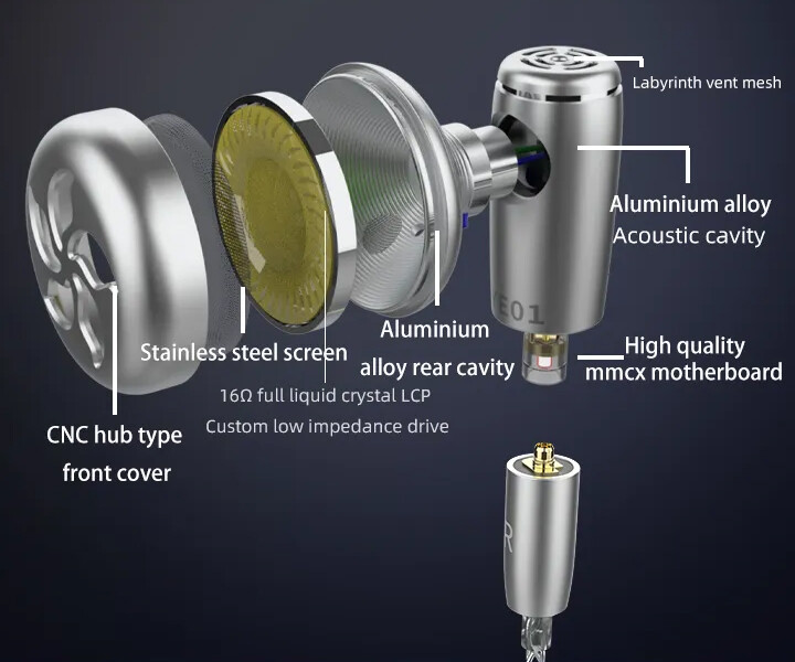 振動板は旧モデルがドーム部のみLCPを採用した複合振動板だったのに対し、「LUN SHENG YE01 (2023)」ではドームおよびエッジ部の振動板全体にLCPを採用したアップグレード版の14mmダイナミックドライバーを搭載。CNC加工されたアルミ合金製のシェルに格納されます。