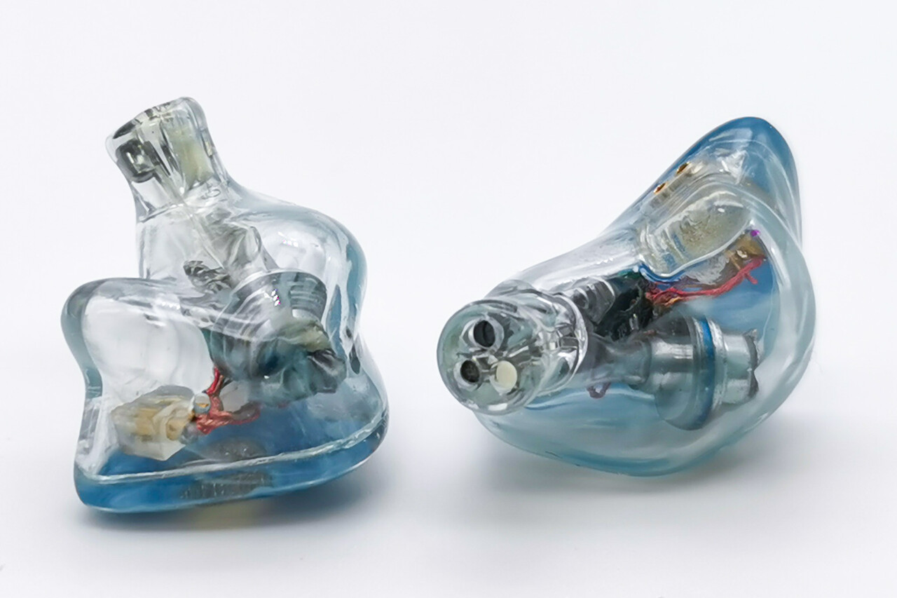 「Kinera Freya 2.0」のシェルはハンドメイドによる透明レジン製。最近では3Dプリントシェルがむしろ主流になりつつあり、同社でも低価格サブブランドの「Celest」では積極的に3Dプリントシェルを採用していますが、ミドルグレード以上の「Kinera」および「Kinera Imperial」ブランドでは丁寧なハンドメイドによる造形にこだわっているようですね。