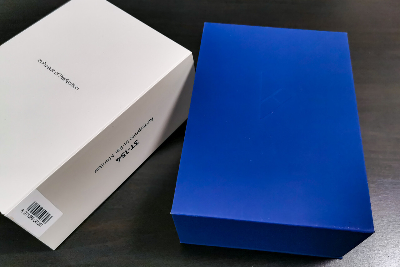 「iBasso Audio 3T-154」のパッケージは製品画像を掲載したシンプルなデザイン。本体サイズにあわせて結構大きめのボックスですね。今回は「シルバー」のモデルで届きました。