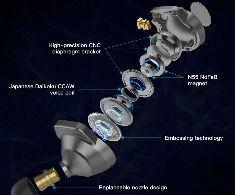 さらに革新的な二重磁気構造の回路設計にカスタマイズされた高磁力N55 NdFeBマグネットを組み合わせることで代表的なIEM(1T程度)や、フラグシップ機の1.6T程度を遙かに上回る3T(テスラ)という驚異的な磁束を実現しています。