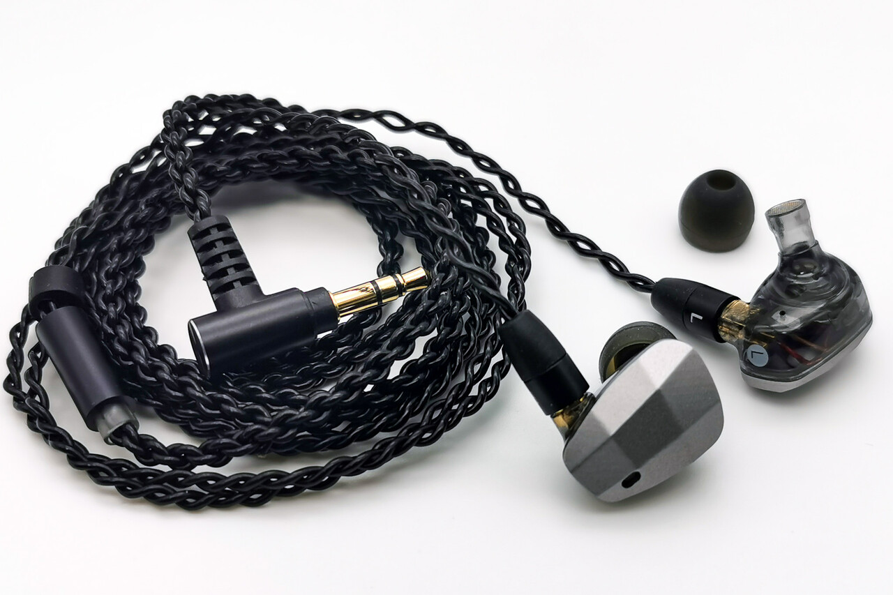 ケーブルはOFC銀メッキ線の撚り線タイプ。被膜はしなやかで取り回しは良く、思った以上に絡まらない印象で使いやすく仕上がっています。イヤーピースはしっかりコシがありサイズが合えば十分にホールドできる質感の良いものが付属します。付属品のほかSpinFitシリーズやTRN T-Eartipsなどを合わせるのも良いでしょう。