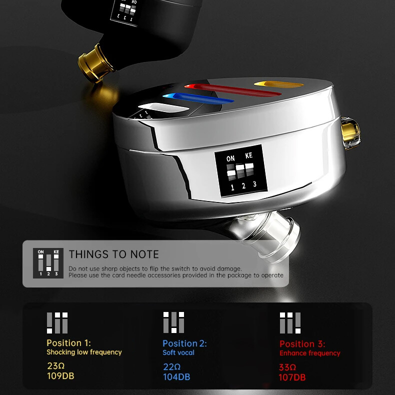 ちょっと残念なことは、この製品の開封時のスイッチ設定が3種類のどのモードでも無い、全てOFF「000」の状態になっており、やや不親切であること。何も考えずにこの「000」モードで聴くと、明るすぎるバランスで「かなり残念な印象」になります。またスイッチ切り替え用のピンは付属していないため、このイヤホンを楽しむためには最低限、まずスイッチ切替のためのピンを別途用意してスイッチを適切に切替えることが必要です。もっとも各モードでの音質面の完成度や製品自体のビルドクオリティに対する価格などを考慮すると、製造工程で「モードを設定する」という工程をひとつ入れるかどうかで追加されるコスト(人件費)は無視できないレベルかもしれません。実際この製品を購入される層のユーザーは全く気にしないと思いますが、逆に言えば不文律でちゃんと理解できるような「マニアのための製品」となりますね(ビギナーやライトユーザーを想定した製品はこの辺に気をつかうのに結構なコストがかかったりしますから)。