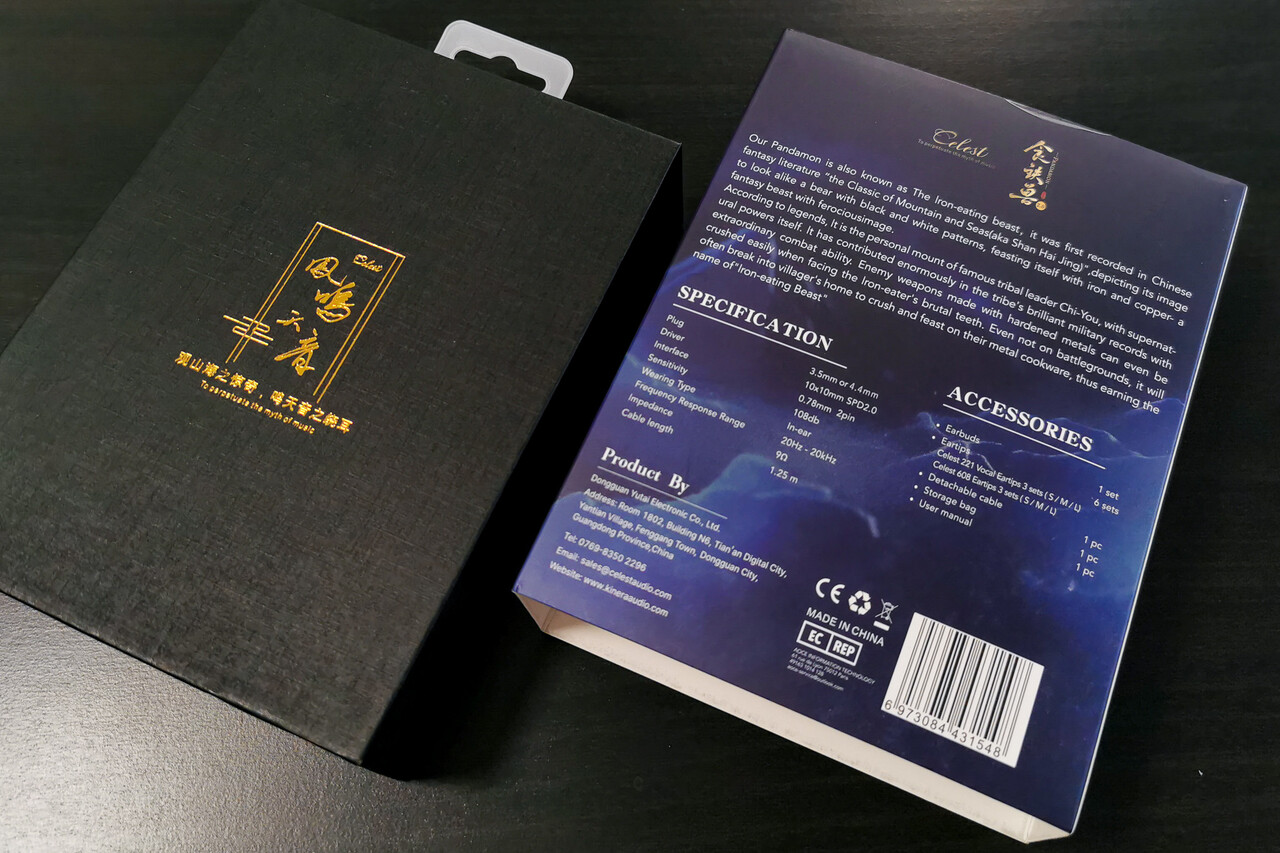 「Kinera Celest Pandamon 2.0」のパッケージはブルーの半透明シェルにあわせた落ち着いたデザイン。先日レビューした「Plutus Beast」とも一貫性がありますね。