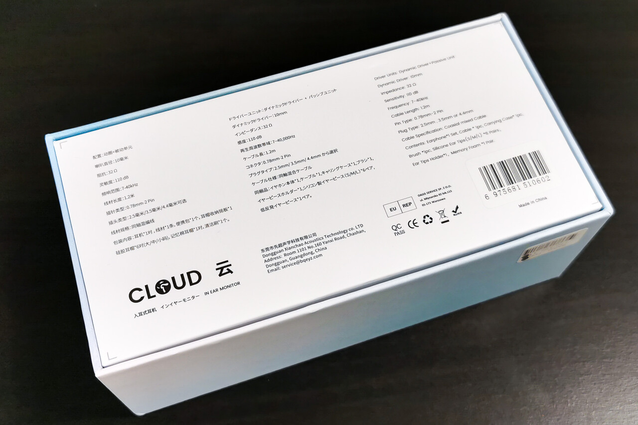 今回の「BQEYZ CLOUD」はウェザーシリーズの第2弾で、独自開発「エアーアシスト振動板」を搭載したダイナミックドライバー+パッシブユニットによるデュアルユニット構造のイヤホンです。