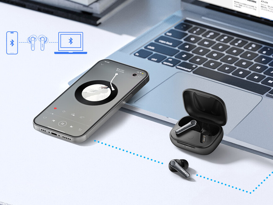 「EarFun Air Pro 4」ではLDACを除く各コーデックにてマルチポイント接続に対応するため、1台のデバイスを接続後に機器側のBluetoothをOFFにするなどいったん切断し、別のデバイスでペアリングすることで、以降は2台のデバイスで同時にペアリングできます。