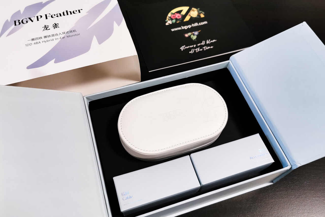 こんにちは。今回は「BGVP Feather」です。老舗の中華イヤホンブランドのひとつ「BGVP」の4BA+1DD構成のハイブリッドモデルです。Knowles製のBA(4基のうちの1基)やCNT振動板のドライバー等を採用し、プラグ交換式ケーブル等アクセサリーも充実して約100ドルと結構お手頃な内容のため、「ついで買い」ながら購入して試してみました。