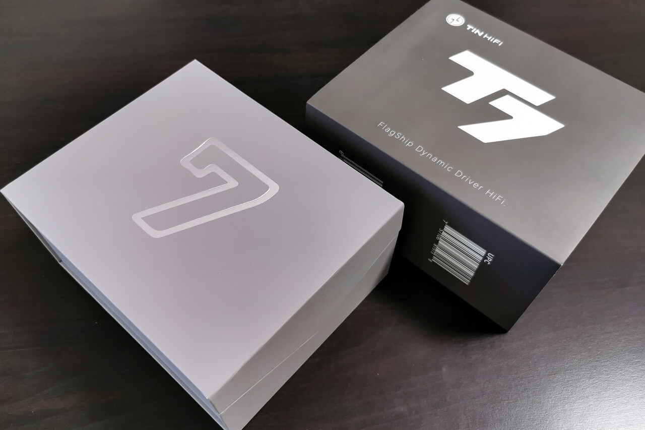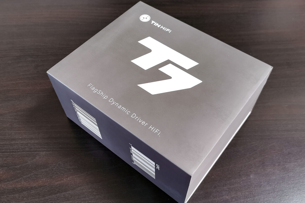 「TINHIFI T7」のパッケージは製品ロゴを載せたシンプルなデザイン。従来のシリーズのなかで最も大きいボックスサイズです。