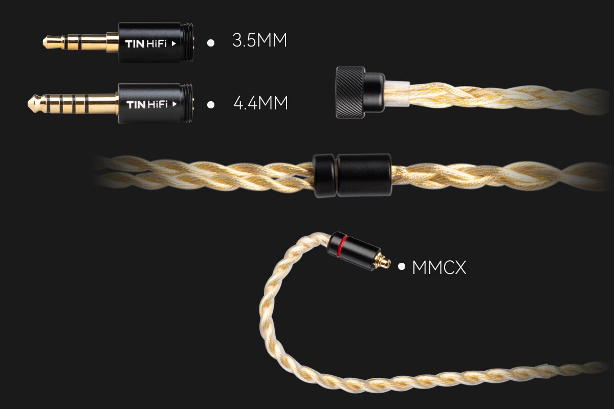 ケーブルは、0.06/54C 単結晶銅と無酸素銅のミックス線のマルチストランド編組構造を採用。プラグは3.5mm および 4.4mm に交換が可能です。