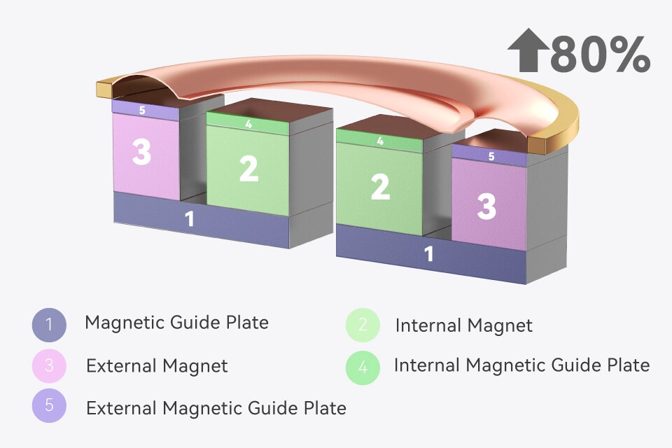 さらに強力なテスラ級のデュアル磁気回路と特許取得済みの磁気伝導プレートを採用。従来のダイナミックドライバーと比較して、磁場の強度が 60% 向上するとともに、精密な磁場制御技術によりサウンドステージの表現力が豊かになり、自然な音色の拡張と明確なレイヤーが確保されます。