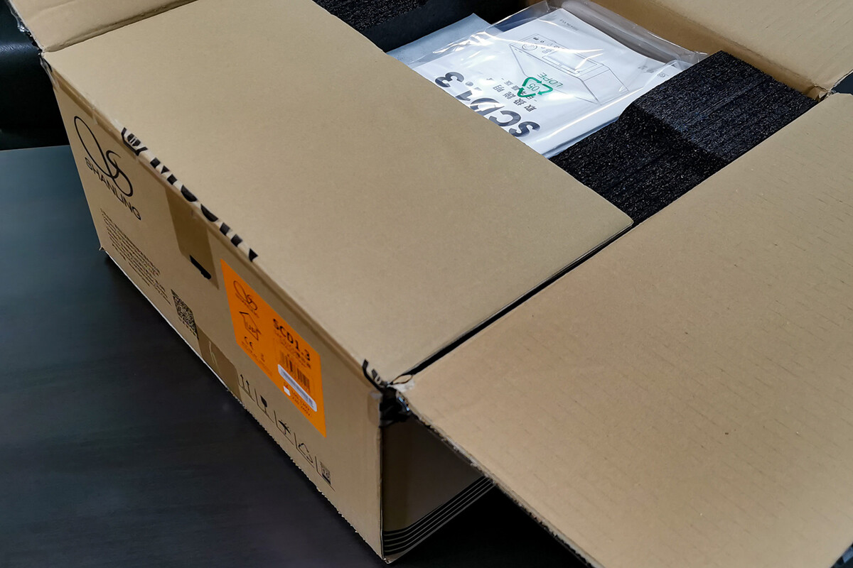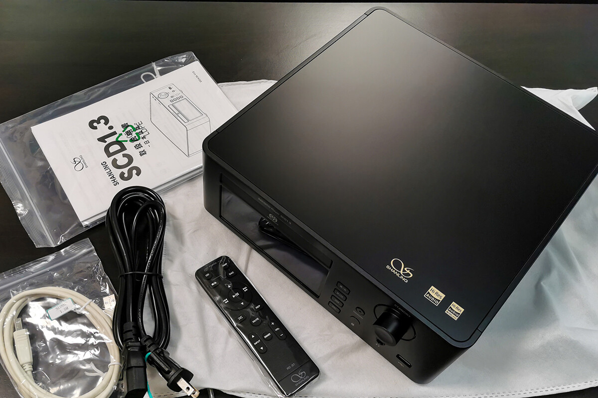 閑話休題、「SHANLING SCD1.3」のパッケージですが、本体、リモコン、電源ケーブル、USBケーブル、説明書などが同梱されていました。私は「ブラック」を購入しています。