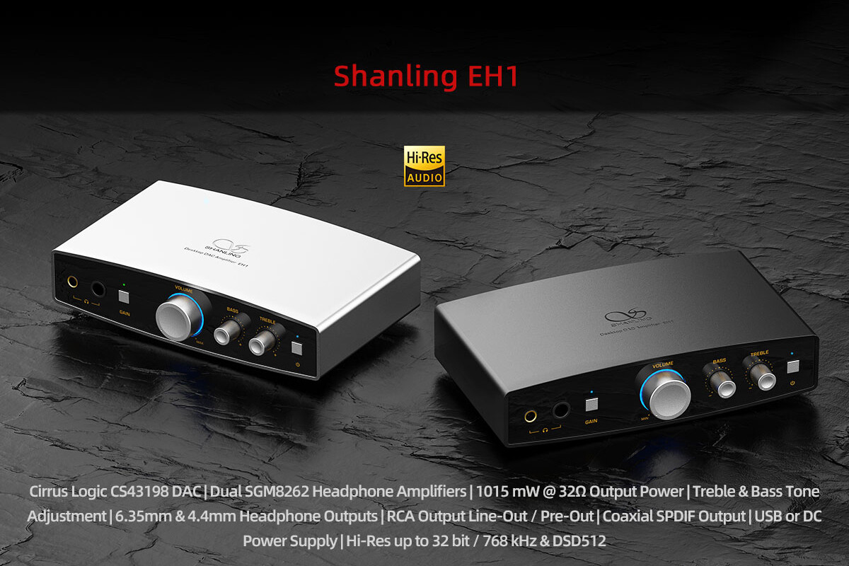 こんにちは。今回は 「SHANLING EH1」です。お馴染みShanlingの据置き型のUSB-DAC/ヘッドホンアンプ製品で、4.4mmバランス出力に対応しつつ3万円台で購入可能なエントリー級のモデルです。オーディオ用途はもちろん、動画視聴やゲームなど、高音質なヘッドホンやイヤホンを組み合わせて幅広く利用できる、ライトユーザーにも最適な製品ですね。
