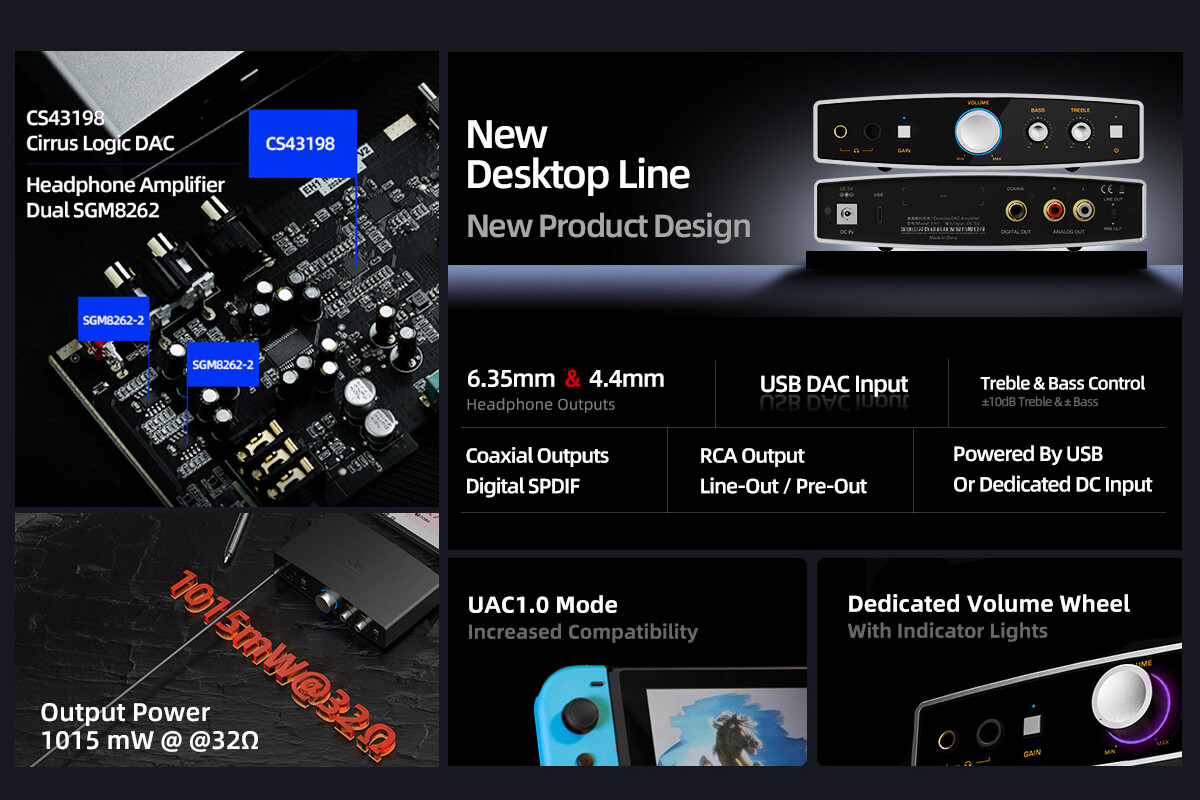 バランス接続に対応した据置きUSB-DAC製品としては低価格ながら解像感や分離は非常に高く、明瞭な印象のサウンドのため、これらの音源では透明感の高い、非常にクリアなサウンドを楽しめるでしょう。また自然な定位があるため、ゲーミングや映像視聴を楽しむ上でも最適です。映画などでは低域のトーンコンロールを強めることでより臨場感を高めることも感覚的にできるのが良いですね。いっぽう音楽のリスニングでは上位モデルのような「Hi-Fi(原音忠実)」とは少し異なりますが、中低域寄りで僅かに温かく若干カマボコな印象のため、ボーカル域が際立ち、高域の刺激を少し抑えることで長時間のリスニングでも聴きやすく調整されています。もし高域の伸びを強化したい場合は高音のトーンコンロールを強めることもできます。■ まとめ