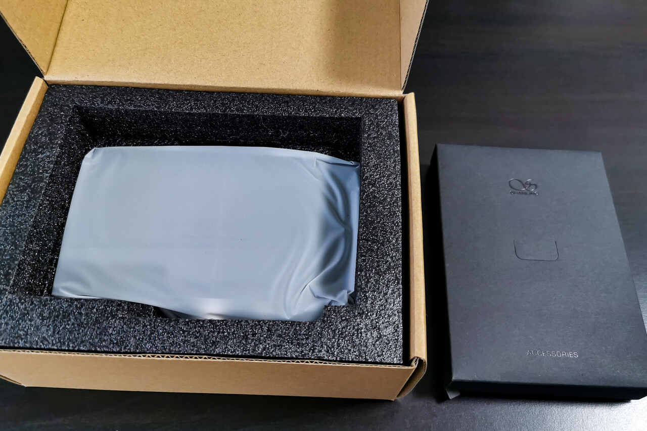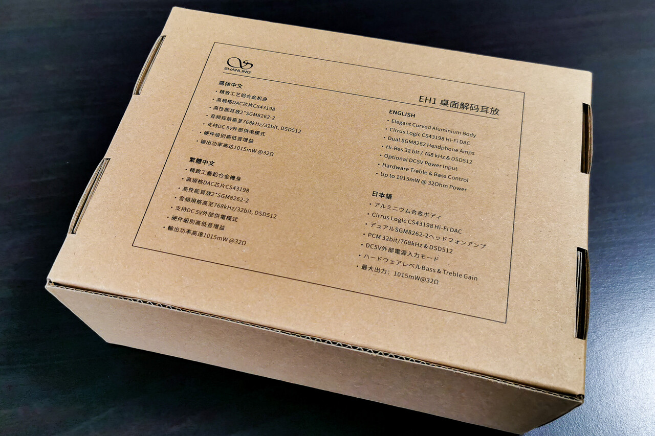 「SHANLING EH1」のパッケージは段ボールにラインアートで描かれたシンプルなデザインです。今回は「ブラック」のモデルで提供いただきました。
