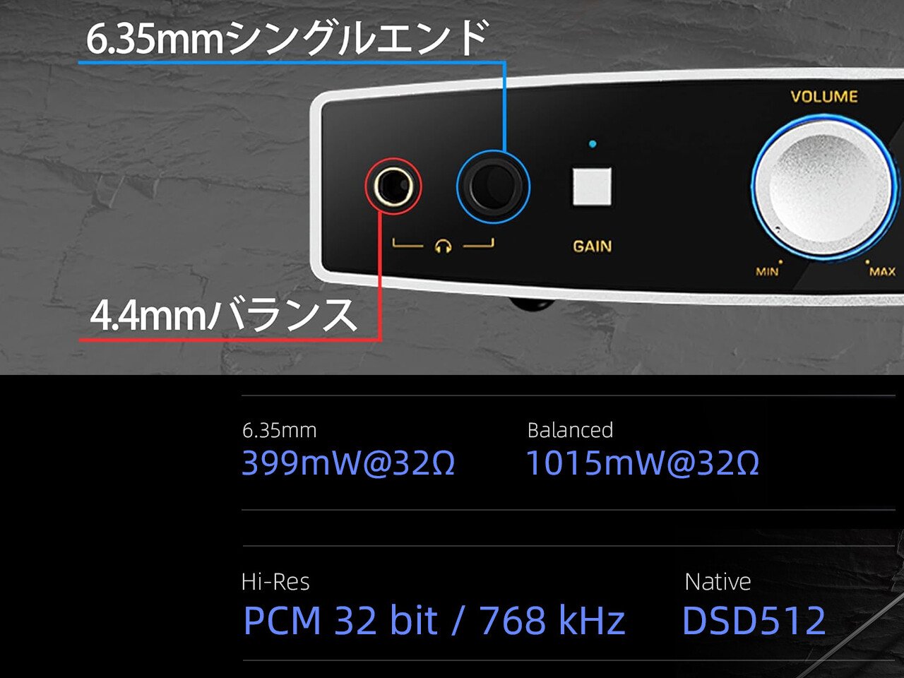 ヘッドホン出力には6.35mmシングルエンドと4.4mmバランス出力を備え、シングルエンドで最大399mW@32Ω(DC接続時)、バランスで最大1015mW@32Ω(DC接続時)の高出力が可能です。
