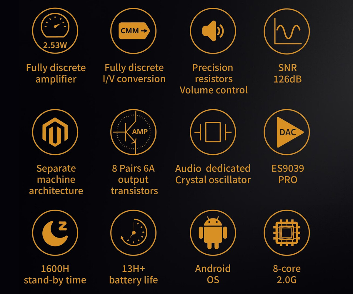 そして、「NiPO N2」の最大出力はシングルエンド(3.5mm)で 633mW、バランス(4.4mm)で2,530mWと、DAPとしては大出力をサポートしています。搭載バッテリーも 8000mAhで最大13時間(シングルエンド)、9時間(バランス)の再生時間をサポートするなど電力面でも余裕を持って駆動します。そのため鳴らしにくい高インピーダンスのヘッドホンなどでもある程度は余裕を持って利用することができます。それでもハイパワーな鳴り方をする他社のDAP製品と比較すると、そこまで高出力という印象は無く、モードをハイゲインに設定し音量を50%以上に上げていくことで自然にカバーする感じです。つまり、「NiPO N2」は寒色系の明瞭さを前面にしたDAPほどの解像をを持つわけではありませんし、出力の強さを強調するわけではありませんが、適度に柔らかく自然で、非常に豊かでかつ透明なサウンドに仕上げられている印象です。まさにハイエンドらしいバランスの良さと質の高さを持っている、という感じですね。
