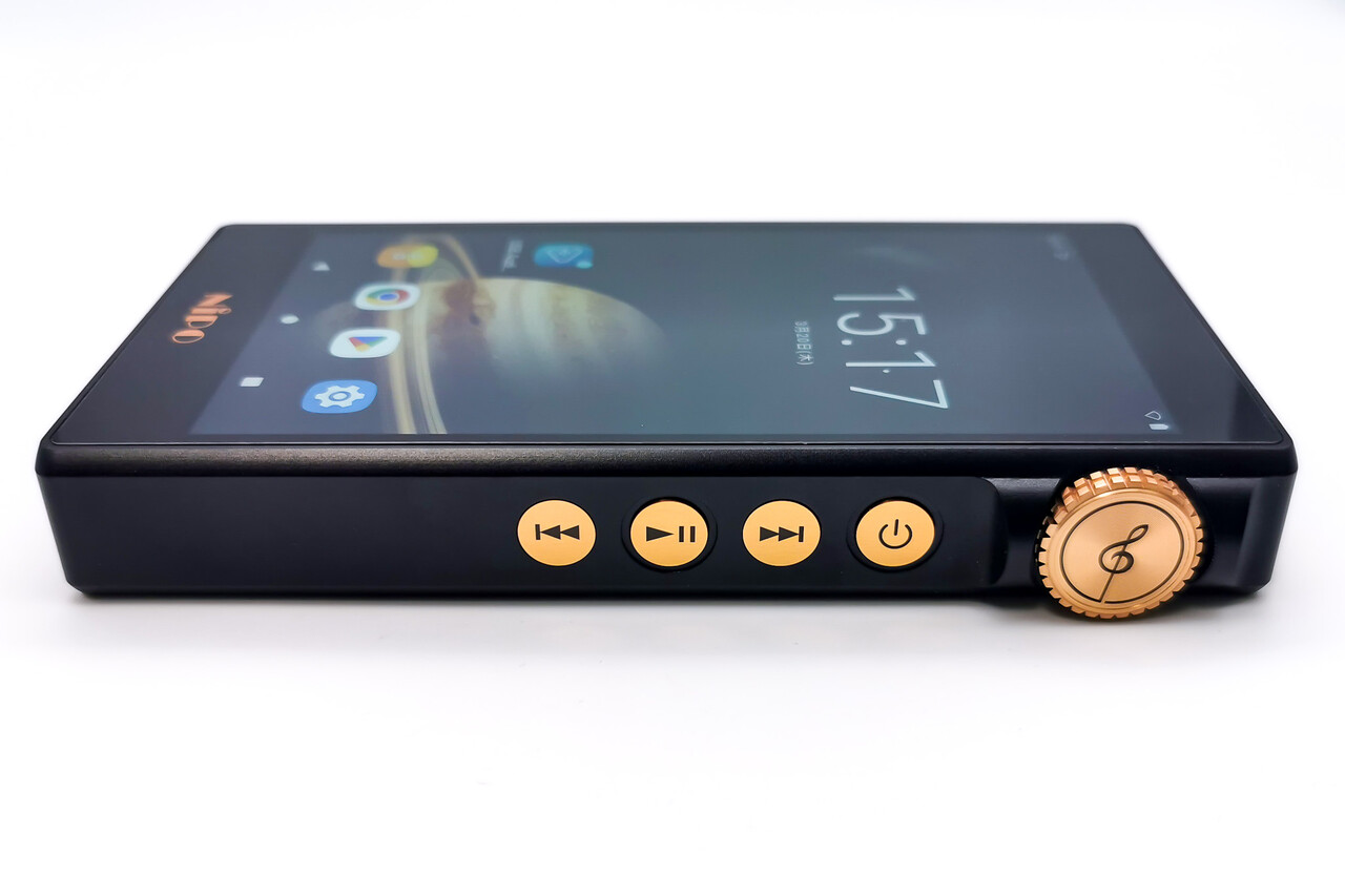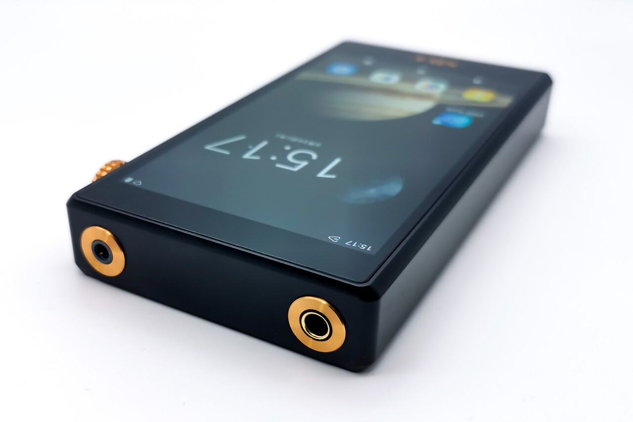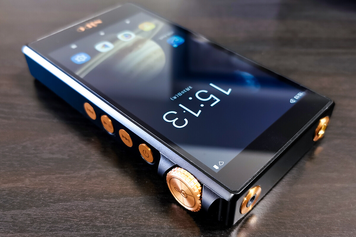 それでも手に持ったときの質感は非常に良く、ゴールドカラーのボリュームノブや各ボタンの操作感などもとても使いやすい印象です。コントロールは右側側面に集中しており、シンプルなレイアウトです。出力は3.5mmシングルエンドと4.4mmバランス。下面にUSB Type-Cのインターフェースとmicro SDのスロットがあります。