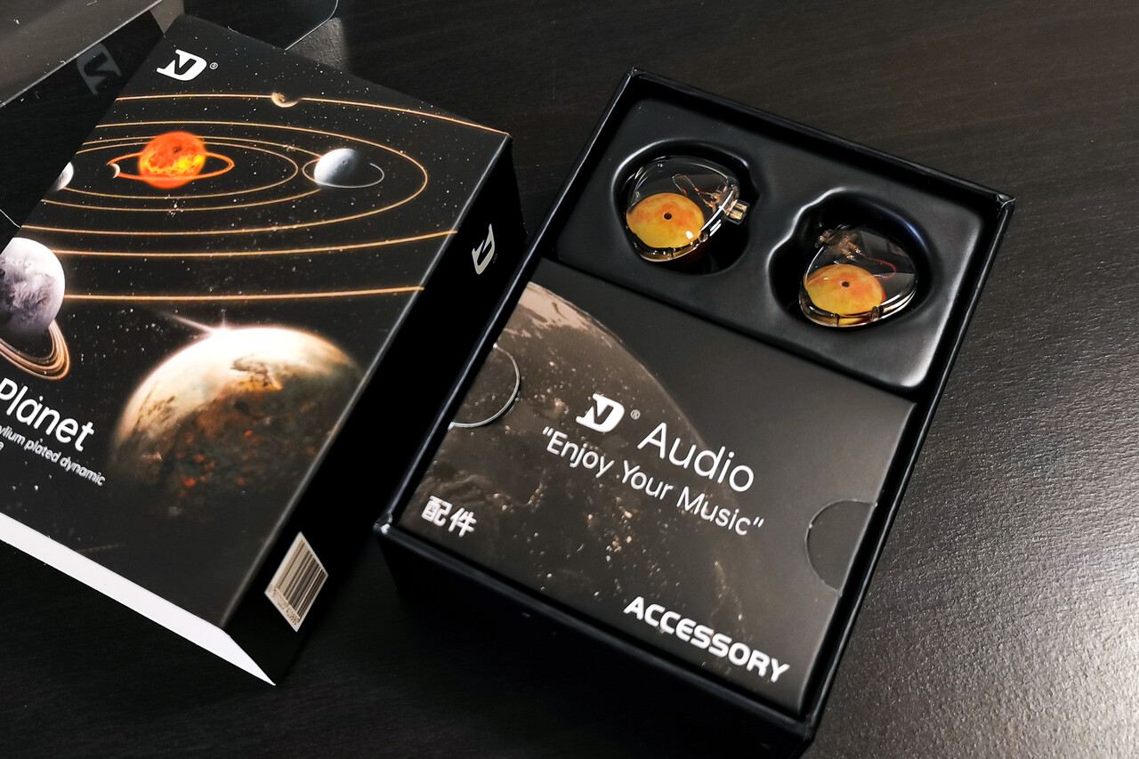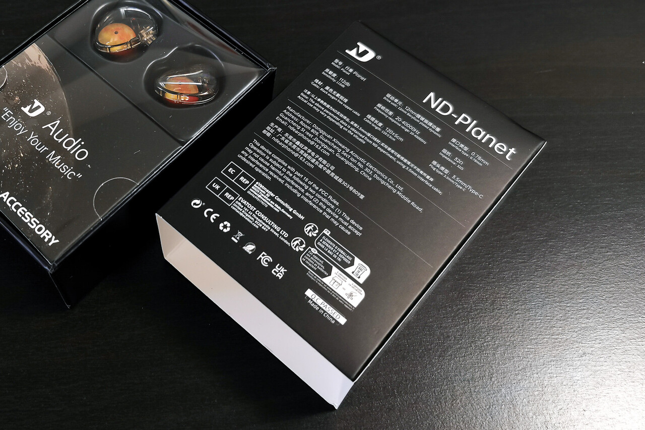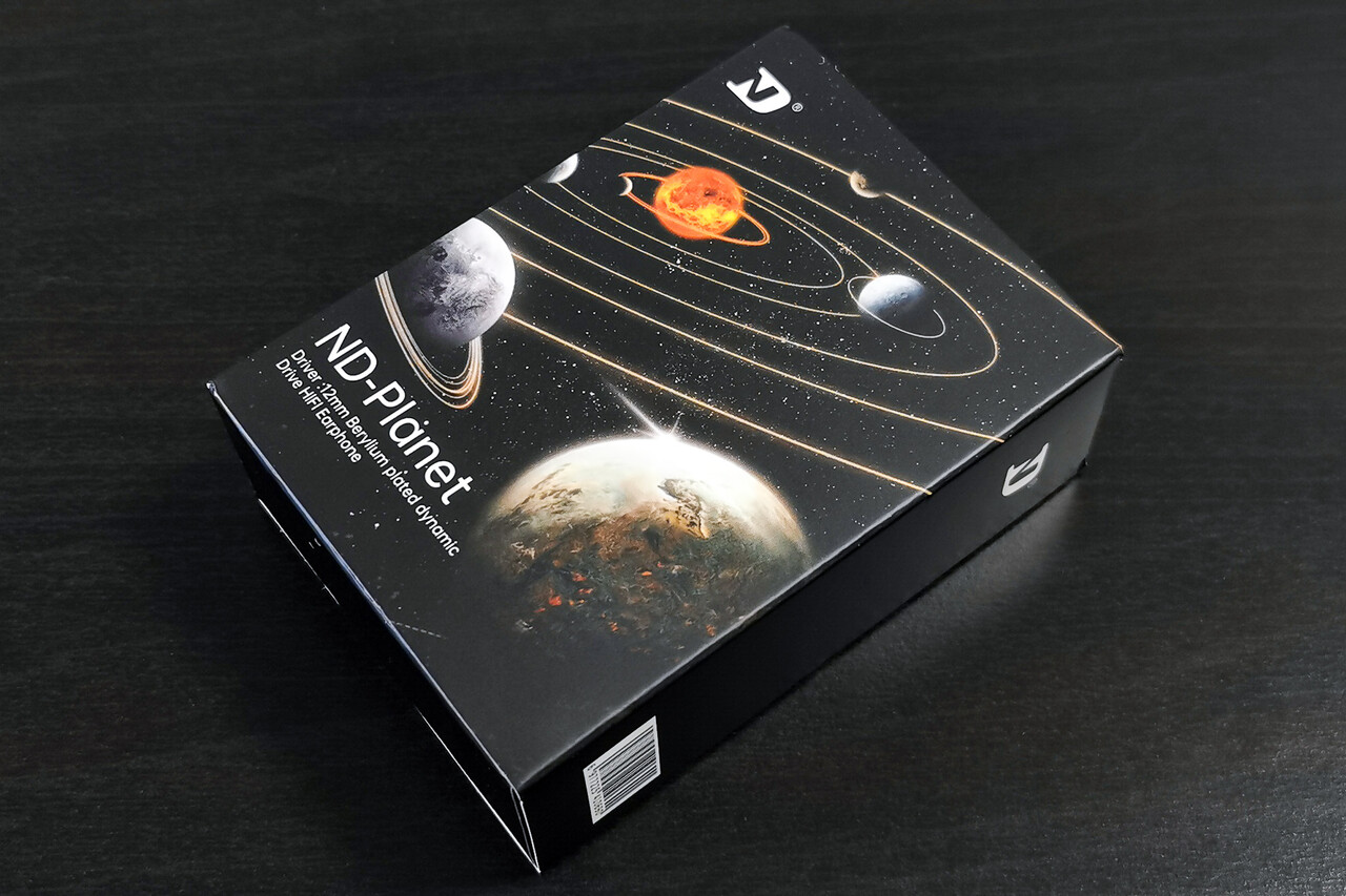 「ND Planet」のパッケージは惑星をイメージしたデザインのボックス。例によってKZぽいサイズ感と構成になっていますね。今回は「ブラック」カラーで届きました。