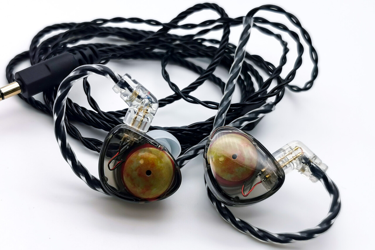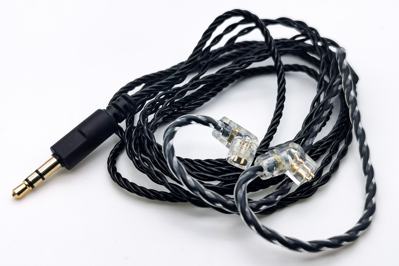 ケーブルは4芯の無酸素銅線で細い線材ですが被膜は弾力がありしなやかで取り回しも良い印象です。コネクタは0.78mm 2pinでカバー形状はqdc互換のKZやTRN等に近い仕様。KZ/TRN用のqdcコネクタのケーブルでリケーブルが可能です(通常の0.78mm 2pinでもいちおう可能)。後述の通りドライバーの性能に全振りのイヤホンのため、リケーブルの効果も高い印象です。