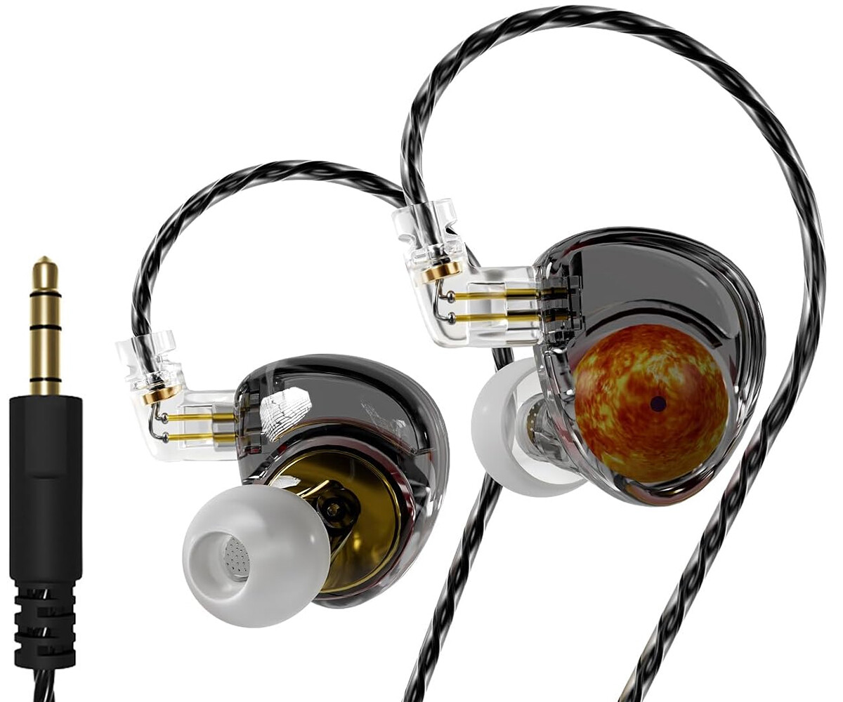 大口径ドライバーを搭載しているもののシンプルなデザインのため耳への収まりは良い形状で装着感もまずまず。ただしイヤーピースで固定するタイプなので遮音性はそこまで高くはありません。というわけで私の場合、イヤーピースは例によって「TRN T-Eartips」に交換しました。