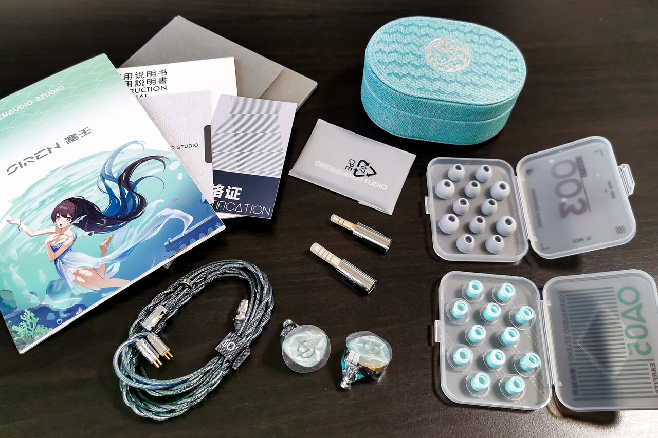 「OPENAUDIO SIREN」には0.78mm 2pin仕様の高純度OCCケーブルを採用。耐久性を高めるシールド層を備えたプレミアムケーブルで、3.5mmおよび4.4mm交換式プラグを採用しています。ケーブルの外装はイヤホンのデザインに完璧にマッチするよう、丁寧にカラーマッチングされています。また最新のOA05リキッドシリコンチップを含む2種類のイヤーチップが付属します。