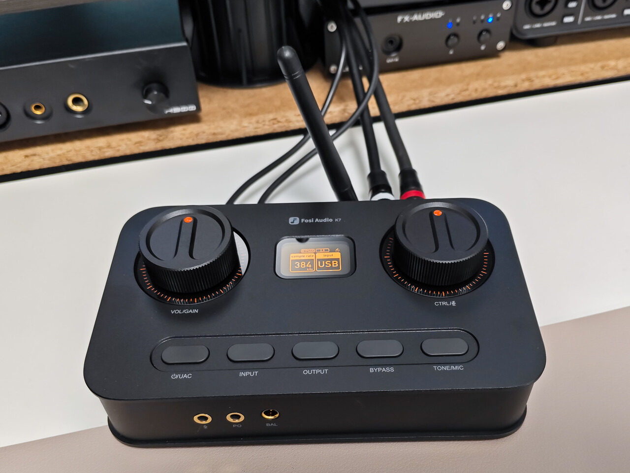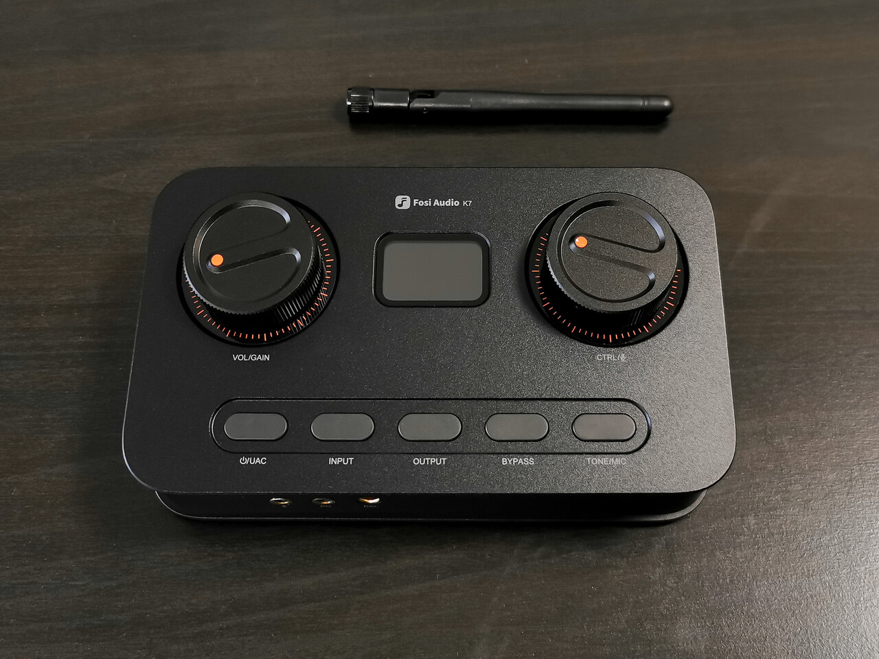 こんにちは。今回は 「Fosi Audio K7」です。高音質DACチップやオペアンプを搭載し、4.4mmバランス出力にも対応した高音質USB-DAC/ヘッドホンアンプ製品ですが、かなりゲーミング用途に特化し、モード変更や調整がボタンやノブ操作で柔軟に行える、結構クセ強めのアイテムです。