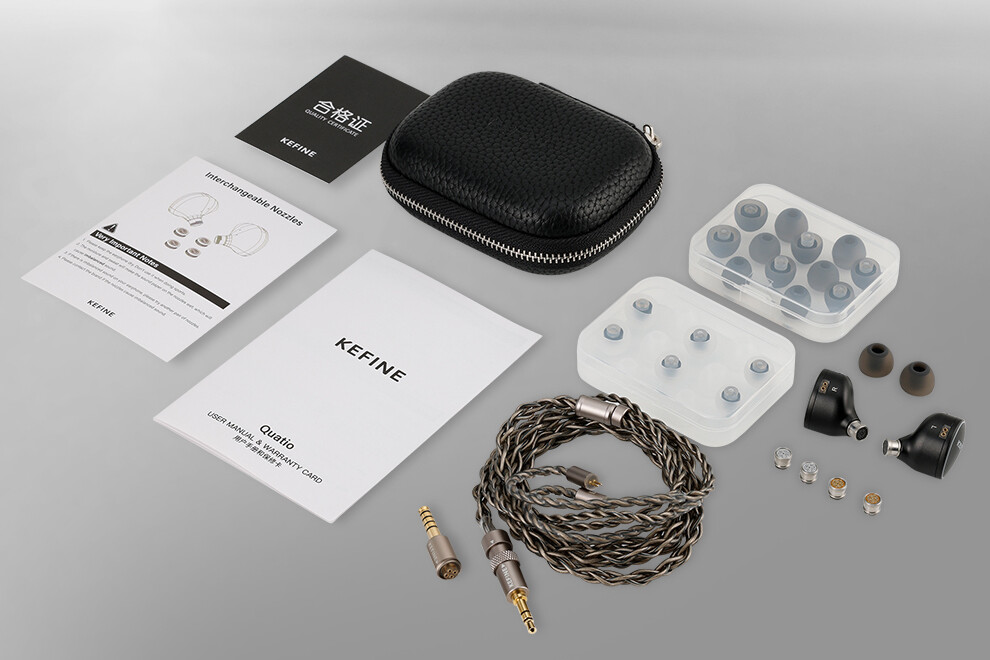 今回の「KEFINE Quatio」は精力的に製品をリリースしている中華イヤホンブランド「KEFINE」による同ブランド初のハイブリッド仕様のモデルです。2基のBAドライバーと10mmのDLC振動板ダイナミックドライバー、8mm PU+LCP振動板ダイナミックドライバーによる片側4ドライバー、3Way構成を採用。さらに交換可能な3種類のノズルフィルターに対応し、異なるサウンドプロファイルに切り替えることが可能です。
