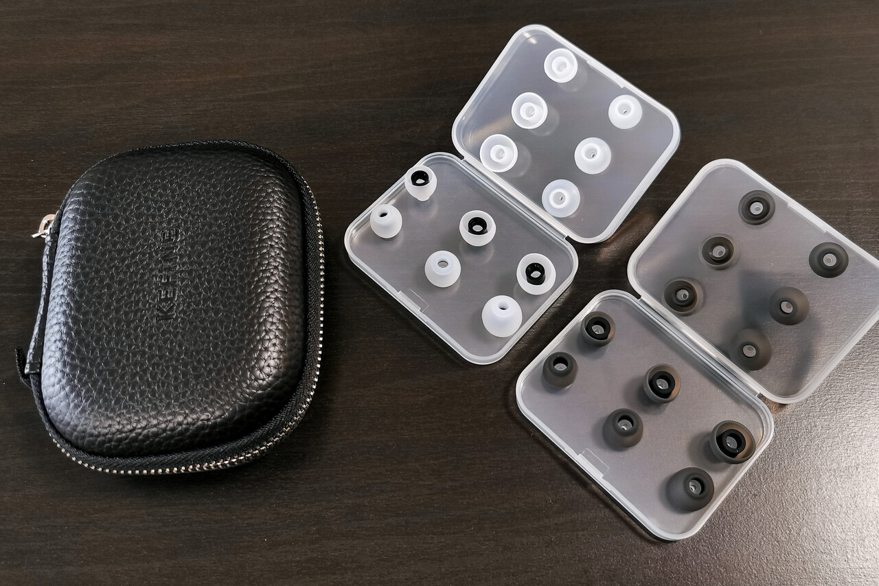 イヤーピースは2種類のタイプが付属します。付属するイヤーピースのほかよりフィット感の良いものに好感するのも良いでしょう。私は今回も大量に購入してある「TRN T-Eartips」を使用しました。