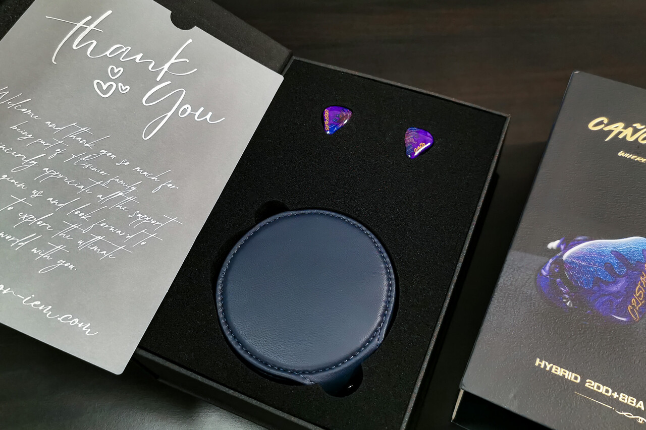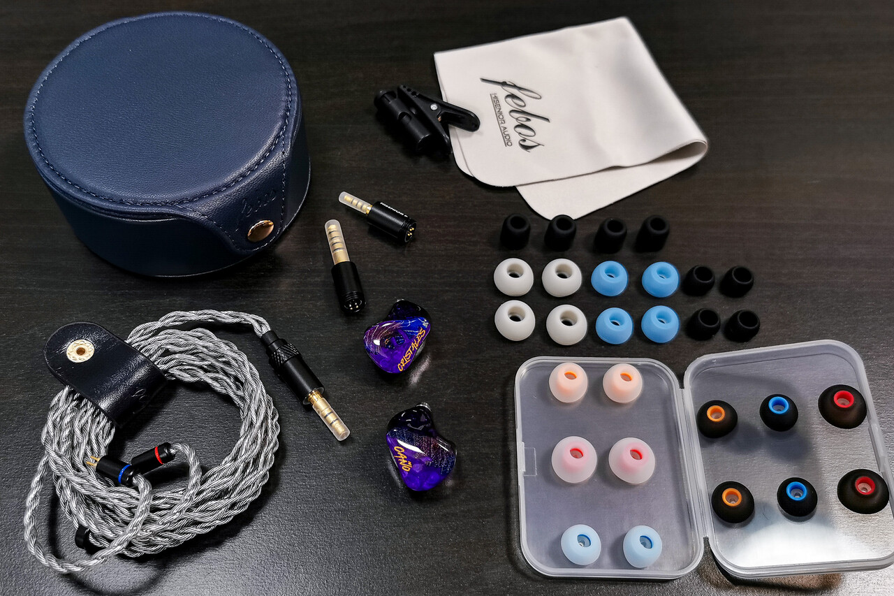パッケージ内容はイヤホン本体、ケーブル、交換用プラグ(3.5mm、2.5mm、4.4mm)、ケーブルフック、イヤーピース(5種類、合計14ペア)、クリーニングクロス、「Manatee Premium Leather Case」本革収納ケース。本革収納ケースは単品でもHiseniorの直販ストアで販売されています。