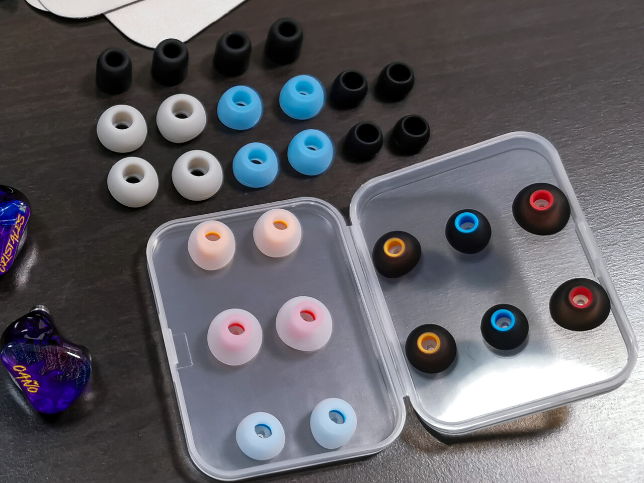 イヤーピースはS/M/Lで3色軸で白色のバランスタイプ、同じく3色軸で黒色の低域タイプ、サイズごとにイヤピの色が異なる開口部が大きい(ソフトバランス)タイプがS/M/Lサイズ各2ペア、ウレタンが大小2ペアで、合計14ペアのセットが付属します。ただ個人的にはこれらは使わずに、いつもの液体シリコンタイプに交換してしまうのですが(^^;)。
