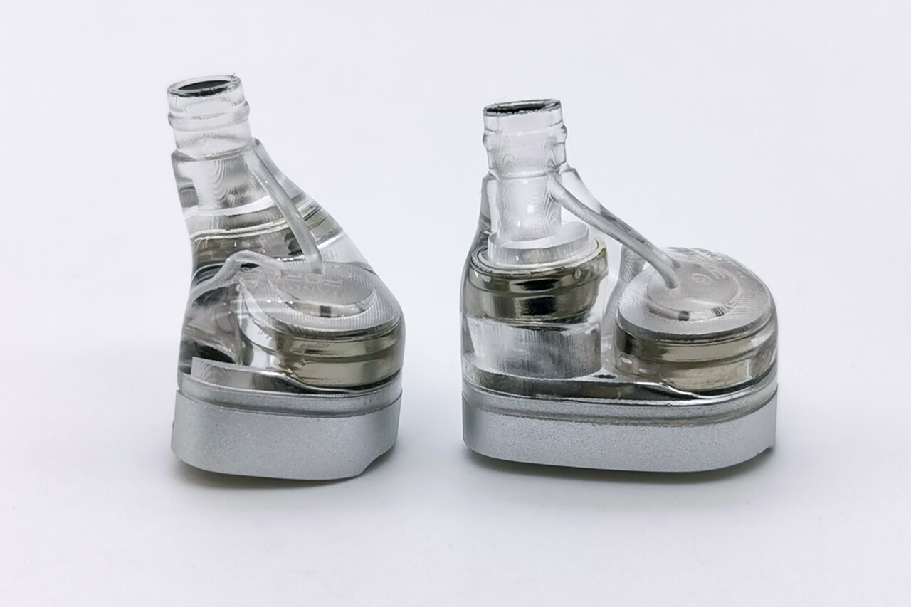 「TANCHJIM X EFFECT Audio FORCE」のシェルには医療グレードの高透明樹脂を採用。外側のフェイスプレートはCNC加工されたアルミニウム製で、繊細なサンドブラスト仕上げにより印象的なコントラストを生み出しています。