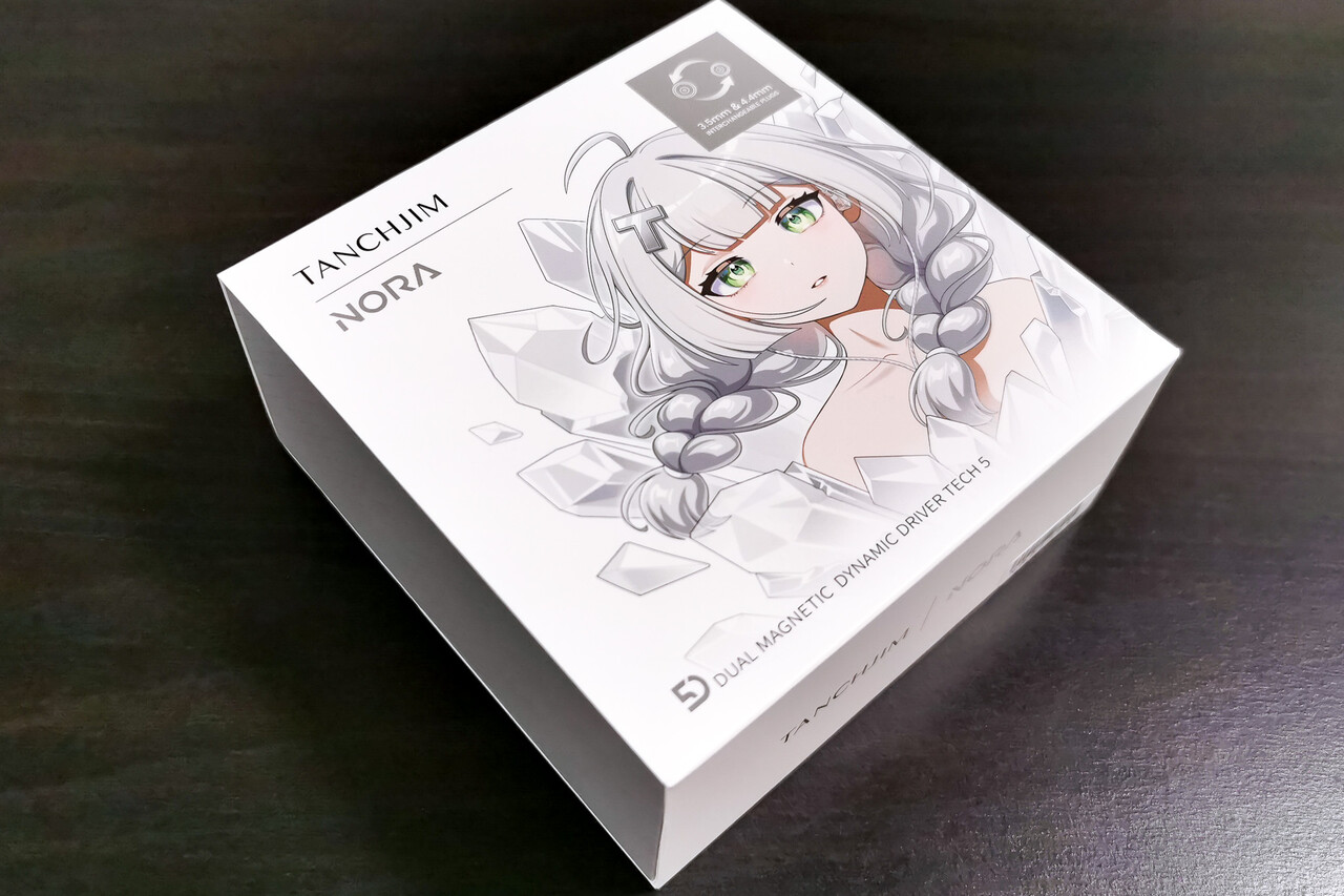 というわけで今回は発売前にTANCHJIMさんから提供いただきました。「TANCHJIM NORA」のパッケージは正方形のボックスでサイズ的には「FISSION」を踏襲していますがパッケージデザインは製品画像ではなくイメージアートを採用しています。
