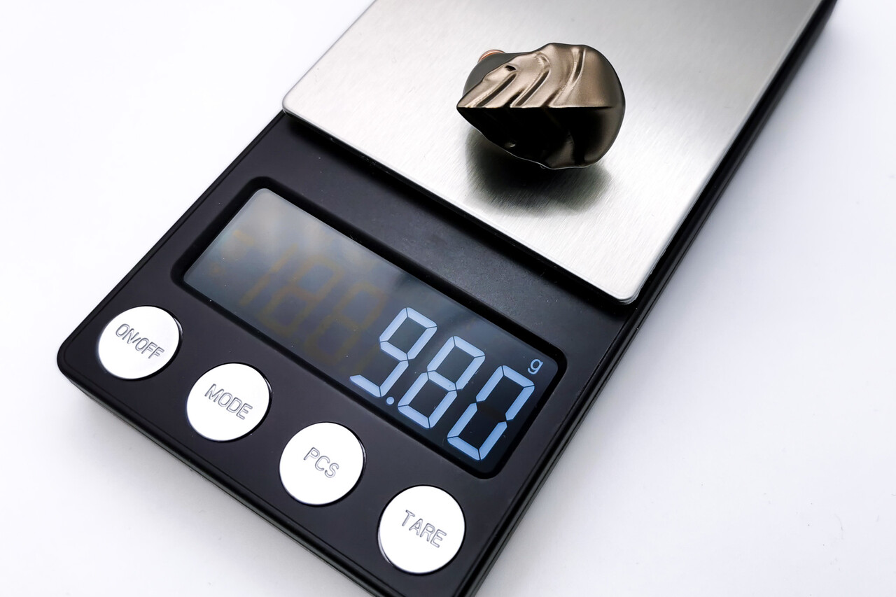 重量はオリジナルの「MK12 Turris」が片側約9.8gなのに対し、「HIDIZS MK12 Turris Gradient (Tint Titanium Alloy Edition)」は14.7gほどで、チタン合金シェルを採用することで約5gほど重くなっています。