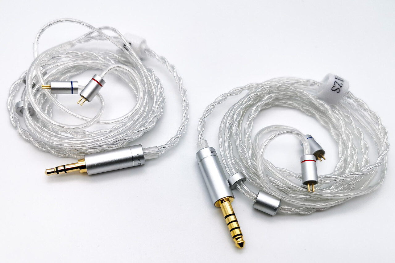 ケーブルは3.5mmプラグと4.4mmプラグの2種類のケーブルが同梱されます。ケーブル自体はオリジナルの「MK12 Turris」と同様で、撚り線仕様の2芯タイプで導体には高純度のOFC銀メッキ線を採用しています。少し細めのケーブルで透明な被膜は適度な弾力があり取り回しは良好です。